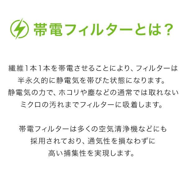 帯電フィルターは静電気のチカラで、ホコリなどの外気のさまざまな汚れを効率的に捕集してブロック。外から進入する空気をキレイにします。