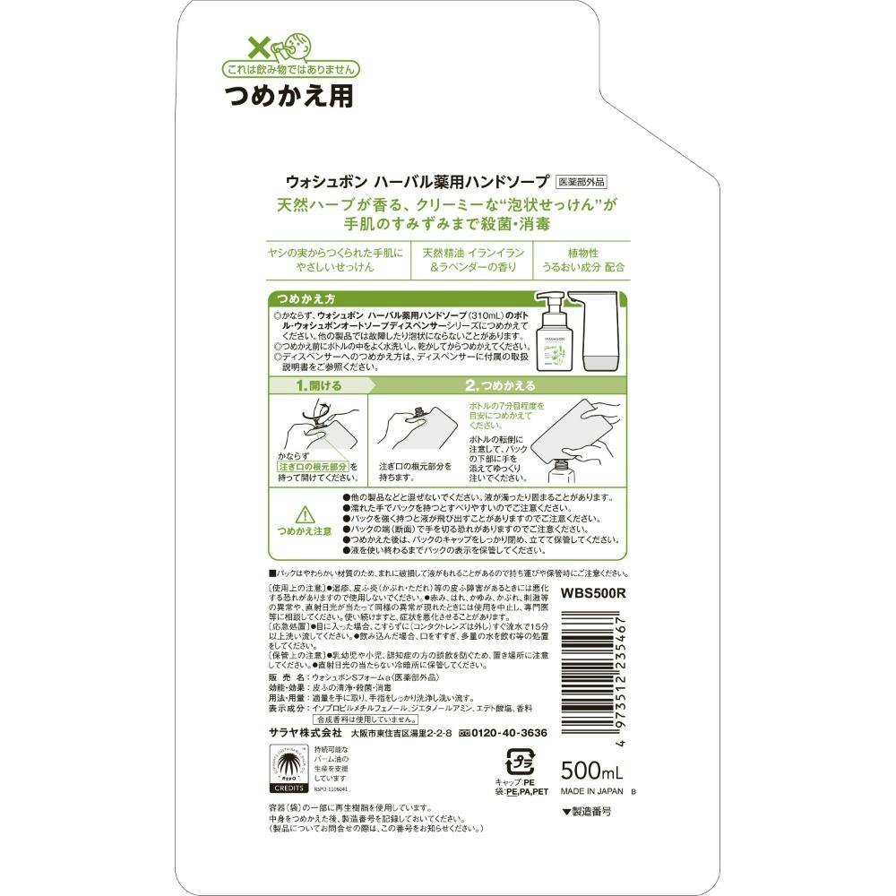 【18点まとめ買い】ウォシュボン ハーバル薬用ハンドソープ 詰替用 500ml × 18点【送料込み】 #hrm-4973512235467