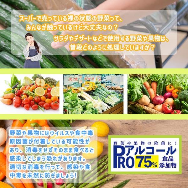除菌 PRO アルコール 濃度75% 食品添加物 1L/ 消毒 野菜除菌 エタノール 果物除菌 キッチン キッチン除菌