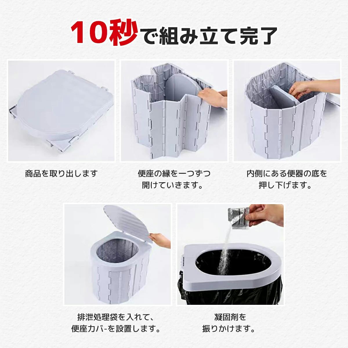 折りたたみ式ポータブルトイレ, 凝固剤・処理袋セット, 非常用・災害用・介護用, キャンプ・アウトドア対応