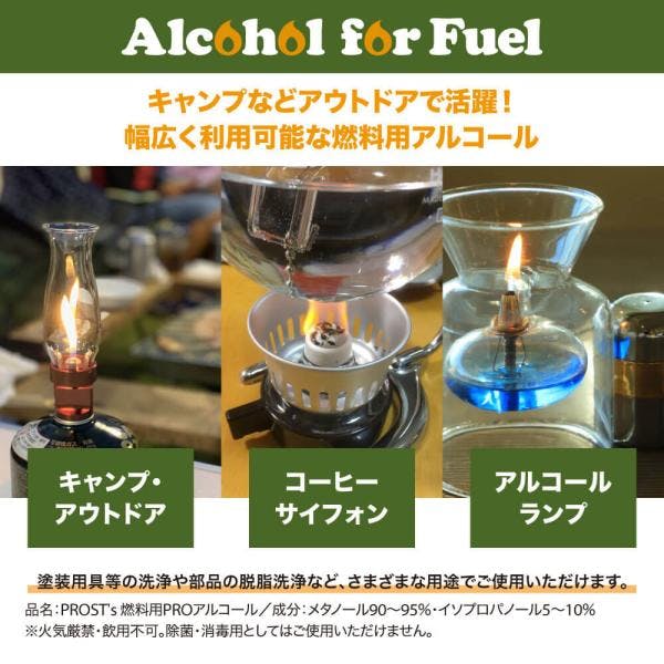 キャンプなどアウトドアで活躍!幅広く利用可能な燃料用アルコール●アウトドア用の燃料●コーヒーサイフォン●アルコールランプ●塗装用具等の洗浄●部品の脱脂洗浄 など