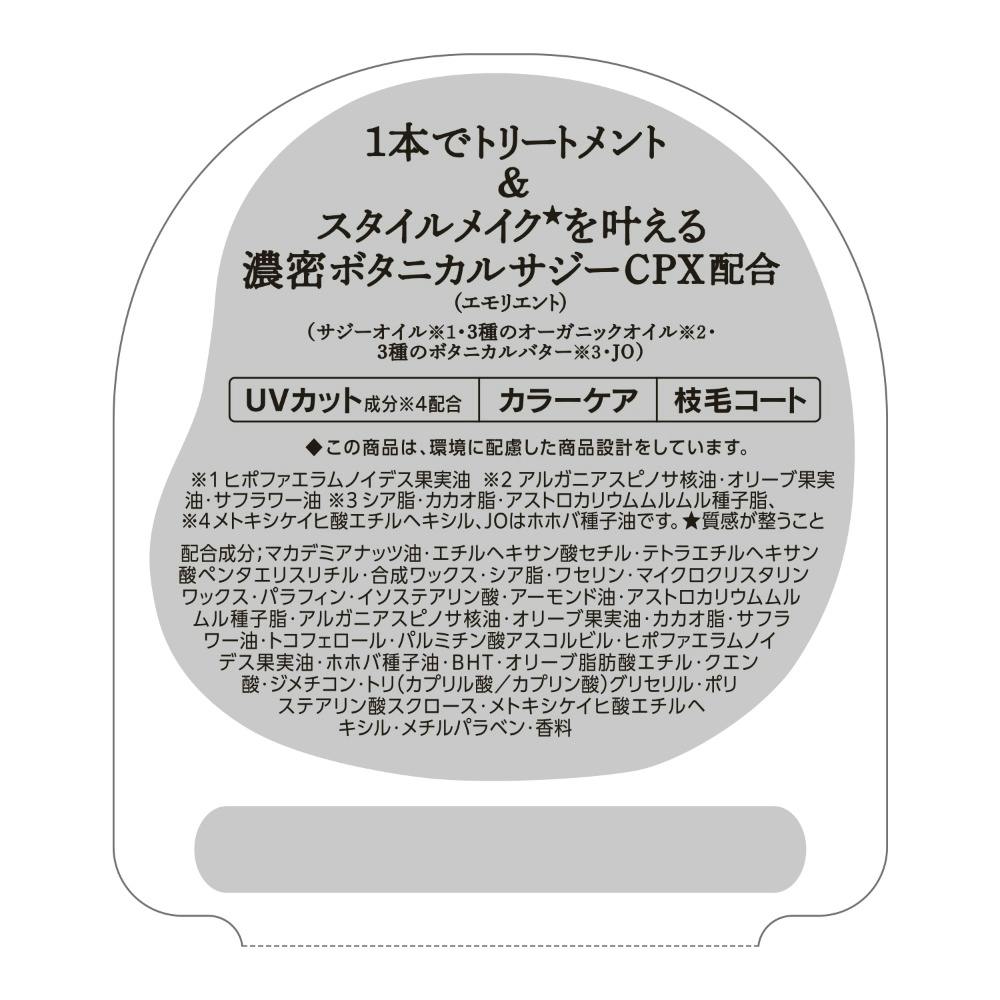 1本でスタイルメイクまで叶える、アウトバストリートメント誕生1本でトリートメント&スタイルメイクを叶える、濃密ボタニカルサジー配合のヘアバーム。とろけるように髪になじんで、自在に束感メイク&うるツヤ持続。みずみずしく可憐なベルガモット&ローズの香り。