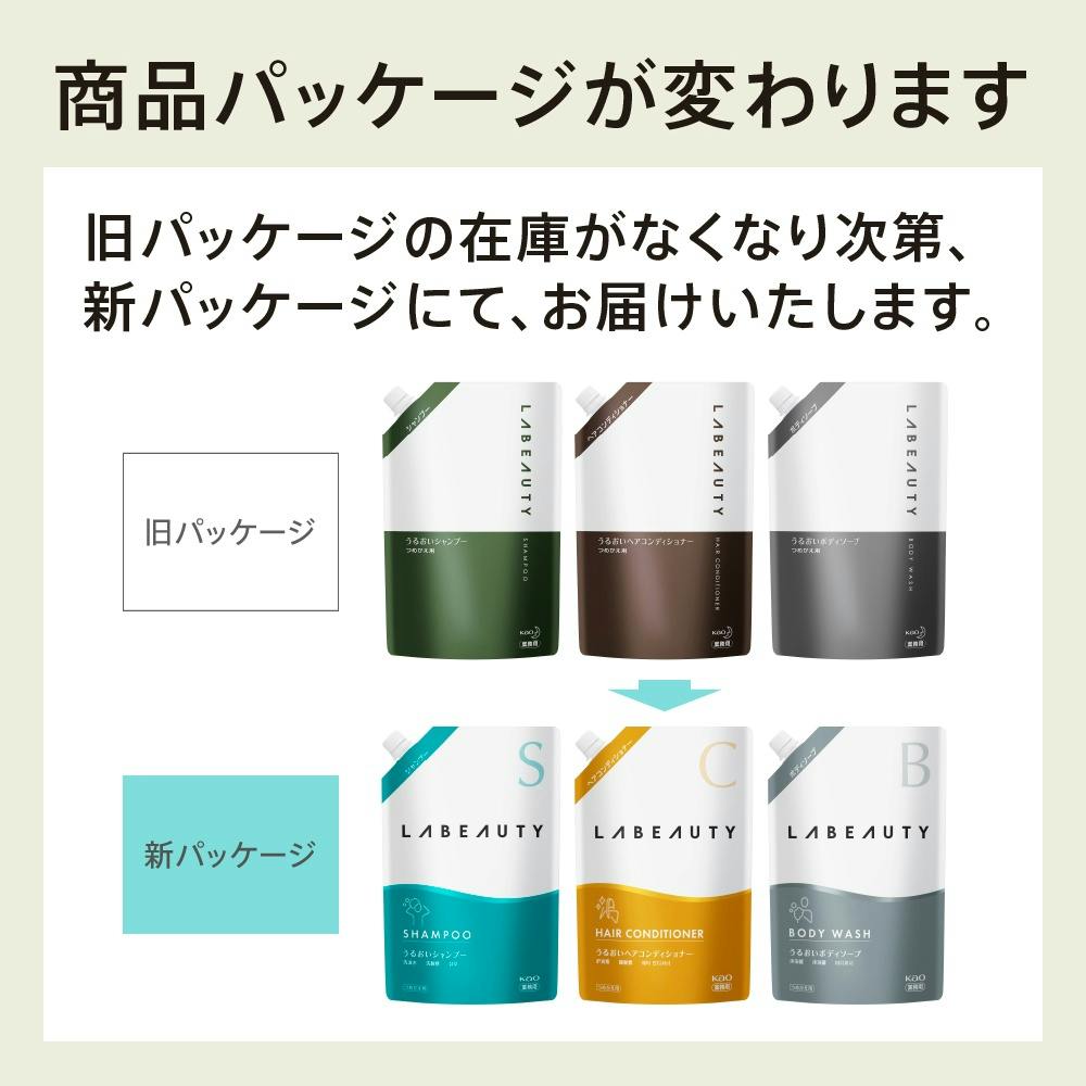 上質な使い心地で髪しっとりまとまる「ラビューティ」 それは美の予感。なめらかな指通りの業務用シャンプー。髪の摩擦を抑えて絡まりを防ぎ、しっとりまとまりやすい髪へ導きます。上質な使い心地で、髪、しっとりまとまる。やさしいフローラルの香り。BIB(バックインボックス)タイプよりもつめかえロス(=残量)が減らせるパウチタイプ。