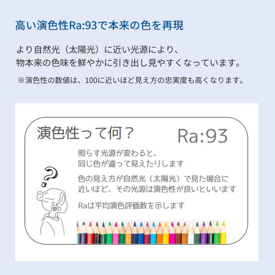 ■定格消費電力:45W■照明の演色性:Ra:93■照明器具別全光束:5,400lm■光源色:電球色/昼白色/昼光色、色温度2,700〜6,500K■調光:10段階 100%〜10%■調色:11段階 電球色〜白色系 + 常夜灯
