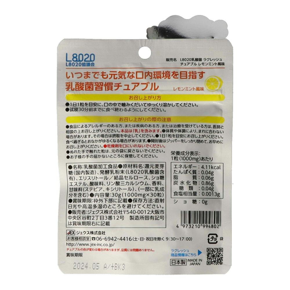 むし歯菌・歯周病菌を抑制するL8020乳酸菌使用●健康な人の口の中から発見されたL8020乳酸菌使用●キシリトール使用、砂糖不使用●30粒入(約30日分)●レモンミント風味