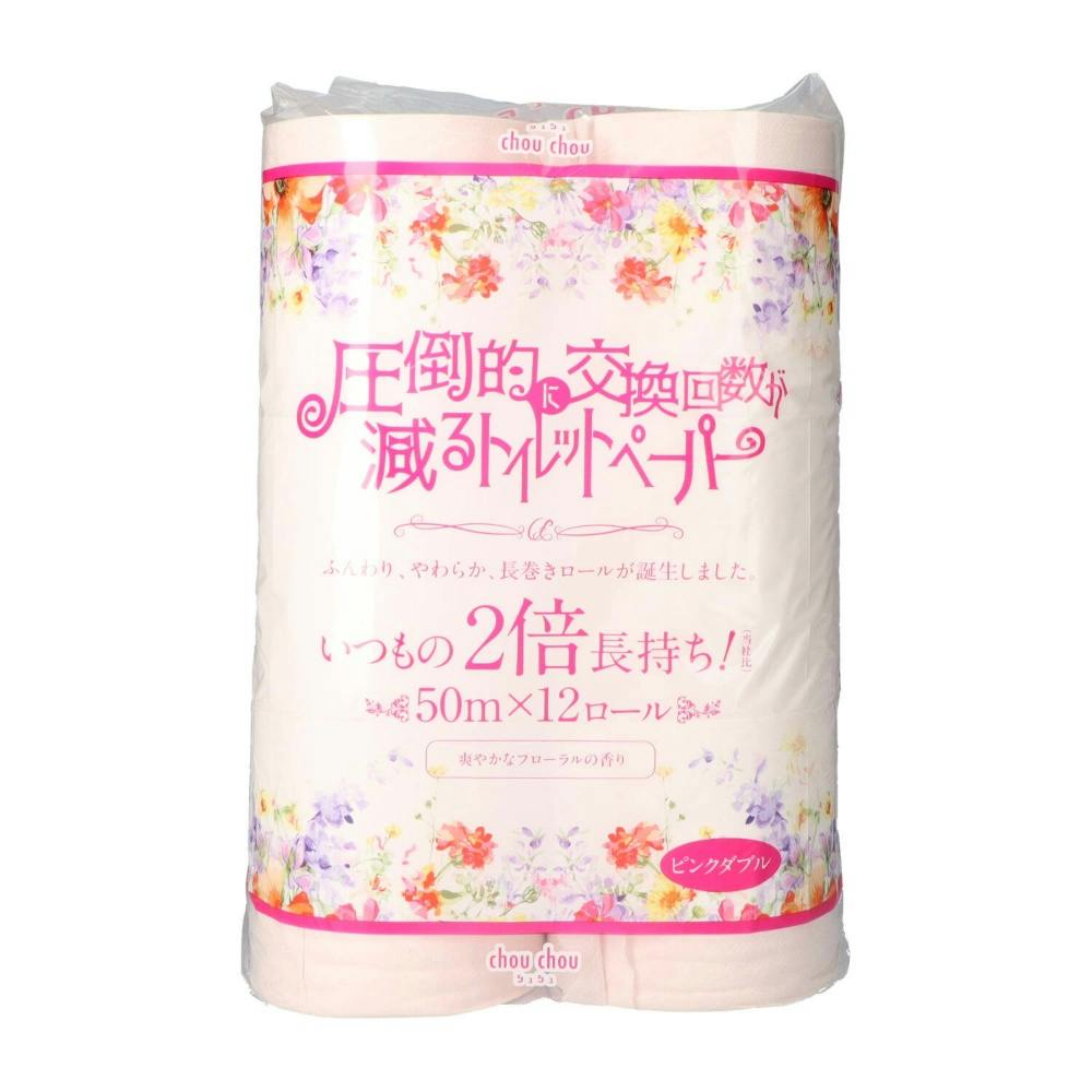 【8点まとめ買い】圧倒的に交換回数が減る トイレットペーパー ピンク 12ロール(ダブル) 2倍巻き × 8点【送料込み】 省スペース 災害 備蓄用にも #hrm-4970123723055