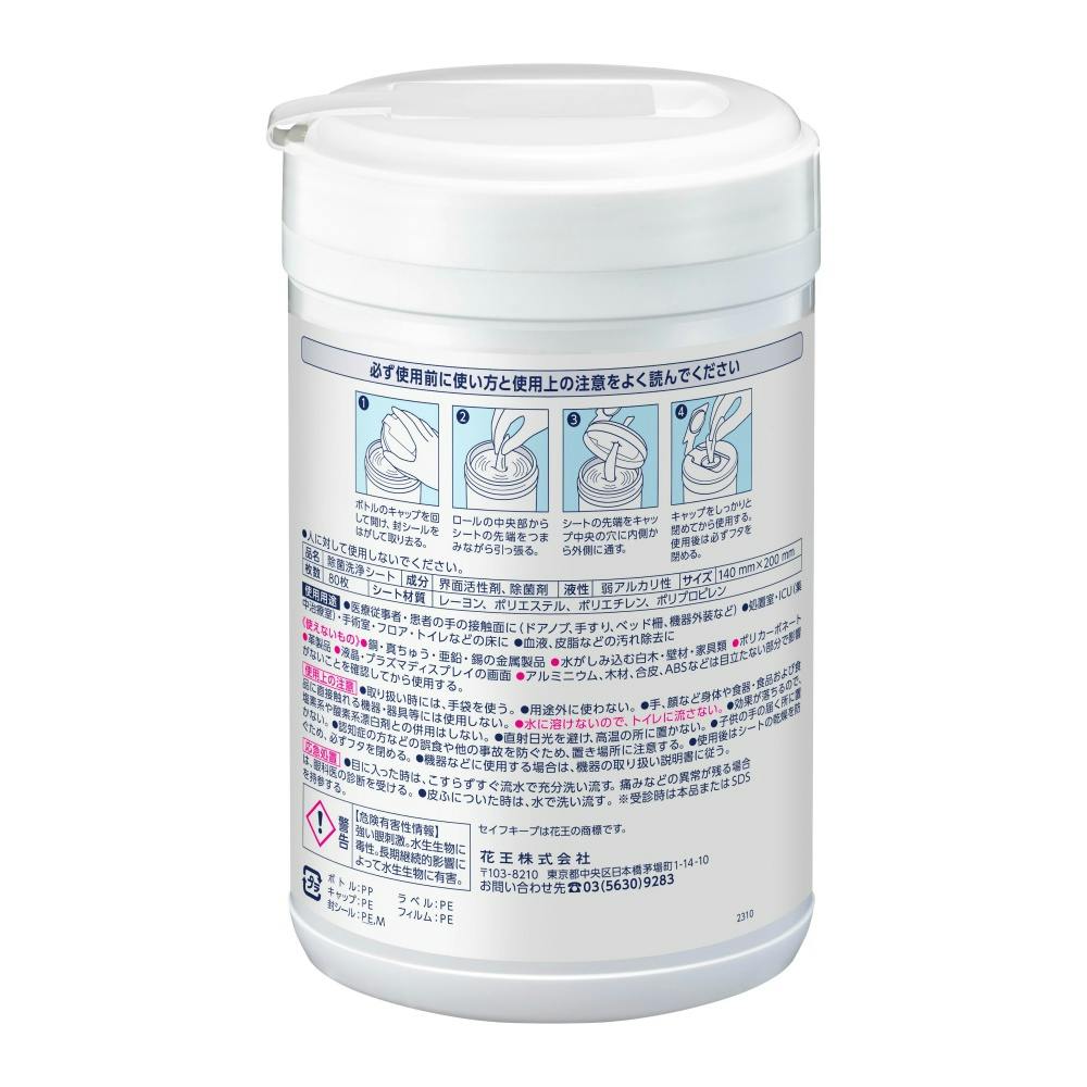 1枚で汚れ洗浄、除菌、ウイルス除去ができる環境清拭用シート。複数のウイルス・細菌で検証を実施。1枚で汚れ洗浄、除菌*、ウイルス除去*ができる、環境清拭用シートです。第四級アンモニウム塩配合。複数のウイルス・細菌で検証を実施しています。非アルコール系なので対象物を傷めにくく、特殊なシート柄で、皮脂汚れから血液汚れまでしっかり落とします。日常清掃から、細菌・ウイルス対策まで、幅広い用途でご使用頂けます。*すべての菌・ウイルスを除去するわけではありません。