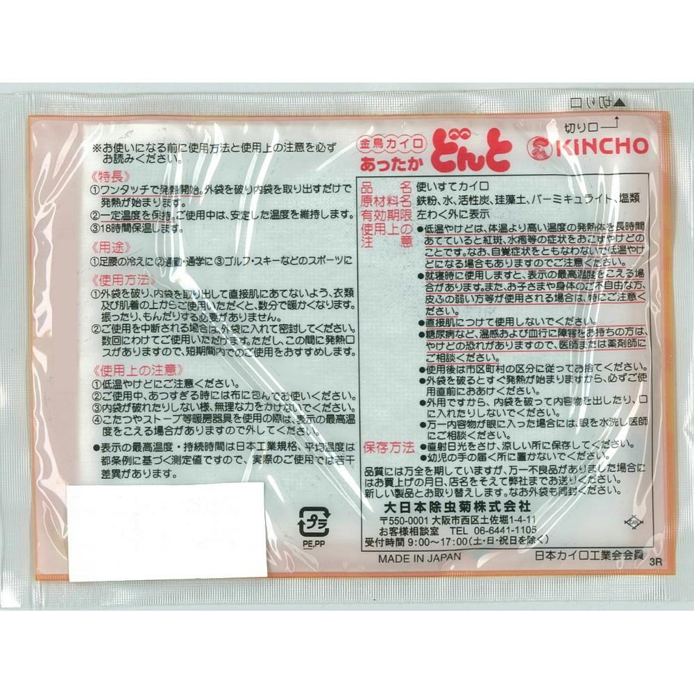 封を切るだけで暖まる封を切るだけで暖まる使い捨てカイロ。外袋を破り内袋を取り出すだけで、ワンタッチで発熱が開始します。約18時間持続。10個入。