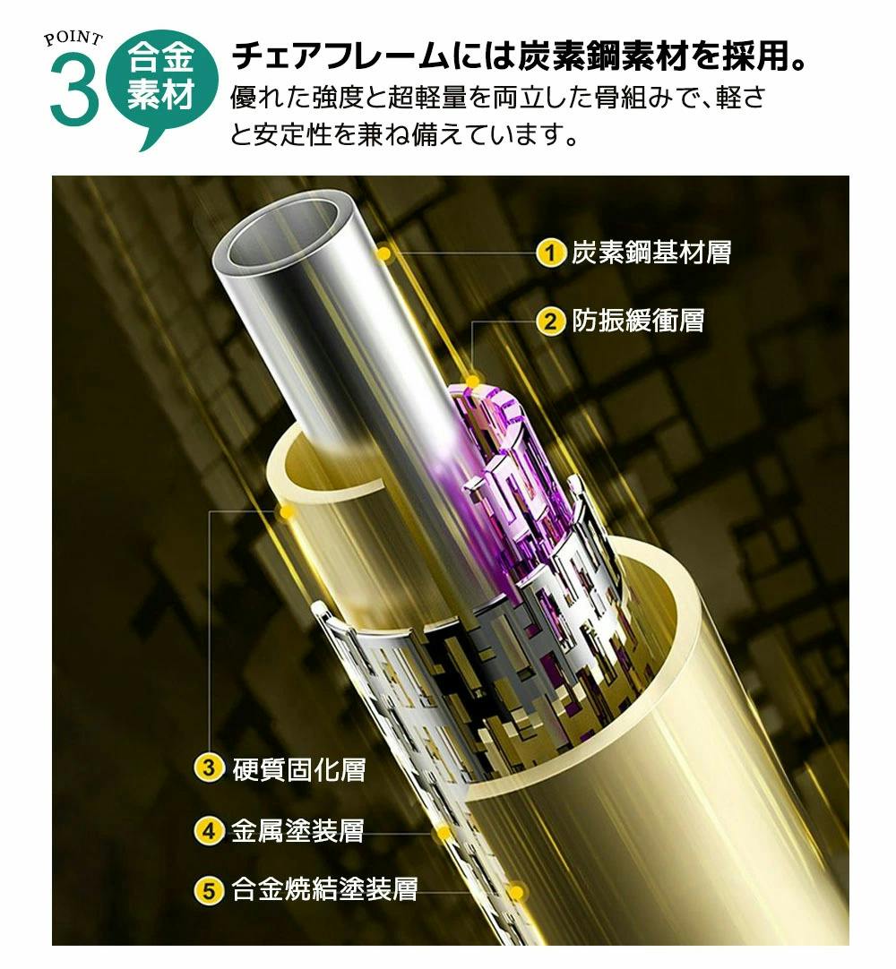 高強度の炭素鋼を使用したフレームで、軽量ながら優れた安定性と耐久性を実現しました。