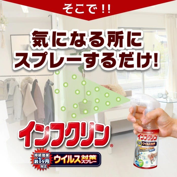 約10cm離してスプレーし、乾くまで置いてください。使用量の目安は100cm2当たり2~3回スプレーしてください。 電気製品には直接スプレーせず、布などにスプレーし、塗布してください。●乾いた後、ムラになる場合は、再度スプレーし、完全に乾く前に布などで均一に塗り広げてください。●効果持続期間は使用状況により異なります。本品使用後に水洗い、水ぶきした場合は、再度スプレーしてください。また、くり返しお使い頂く事で、効果が高まります。
