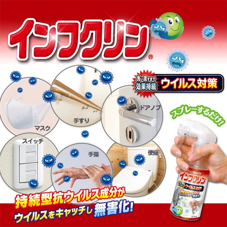 【インフクリン 250mL(スプレーボトル)+1L 詰替用 (紙パック)】 ちあふる お得なセット 「持続型抗ウイルス剤」がウイルスをキャッチし、99.9%以上低減します。 塩素系成分不使用 子供・ペットにも安心 JAN:4968909007932