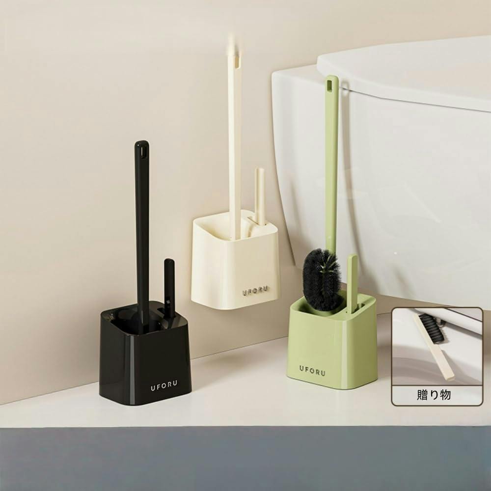 トイレブラシ, 壁掛け式, 長いハンドル43cm, 水切り機能付き, PP+ABS素材, 3色展開