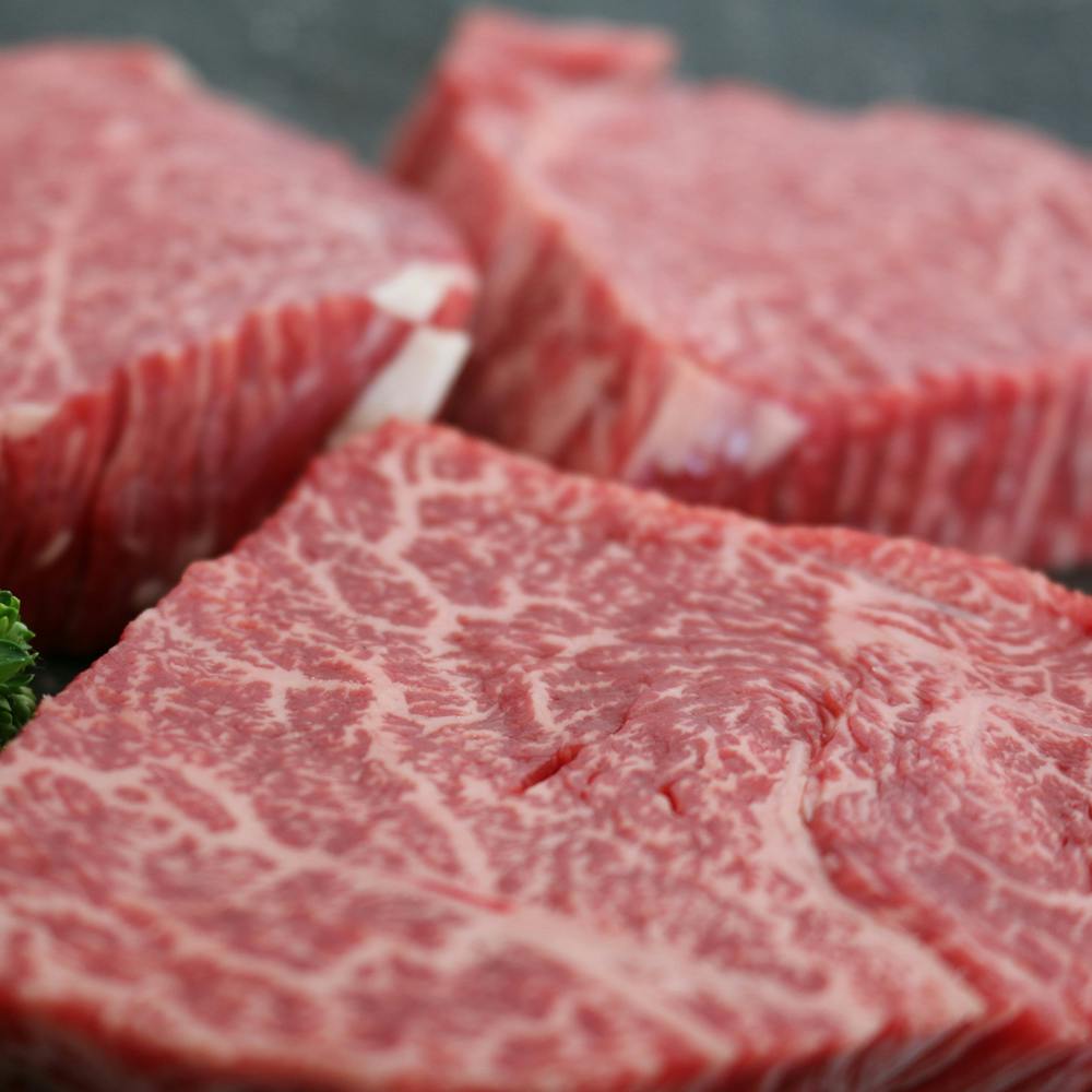 群馬県の赤城山麓で丁寧に育てられた、黒毛和種と乳用種を交配させた交雑種です。自然豊かな環境でストレスをできるだけかけずに育て、肉、脂の旨味を引き出すよう飼育しています。