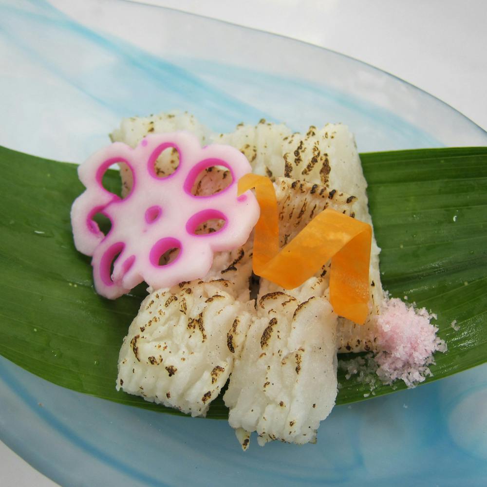 ●はも湯引き:はも(徳島県産)、梅、食塩、発酵調味料、還元水飴、野菜色素、香料 ●あぶり鱧:はも(徳島県産)、食塩、しそ梅酢