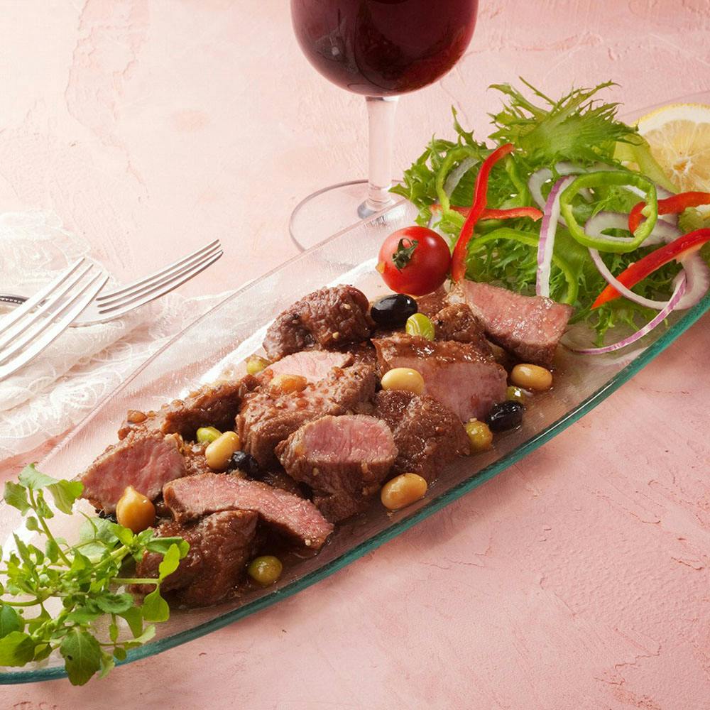 大人の隠れ家のような雰囲気の神戸肉バル「バルティロ」。お肉とワインをコンセプトにした神戸の肉好きが集まる大人の社交場となっております。六甲山麓の大地から育まれる神戸ワインにお肉を漬け込み、和風ステーキソースを入れ、低温真空調理で赤身の旨味をギュッと詰め込んだひとくちステーキを150gの食べきりサイズで温めるだけの便利な小分けにしました。解凍後、電子レンジ500wで1分程温めてお召し上がりください。冷凍のままであれば500wで2分30秒程温めてください。