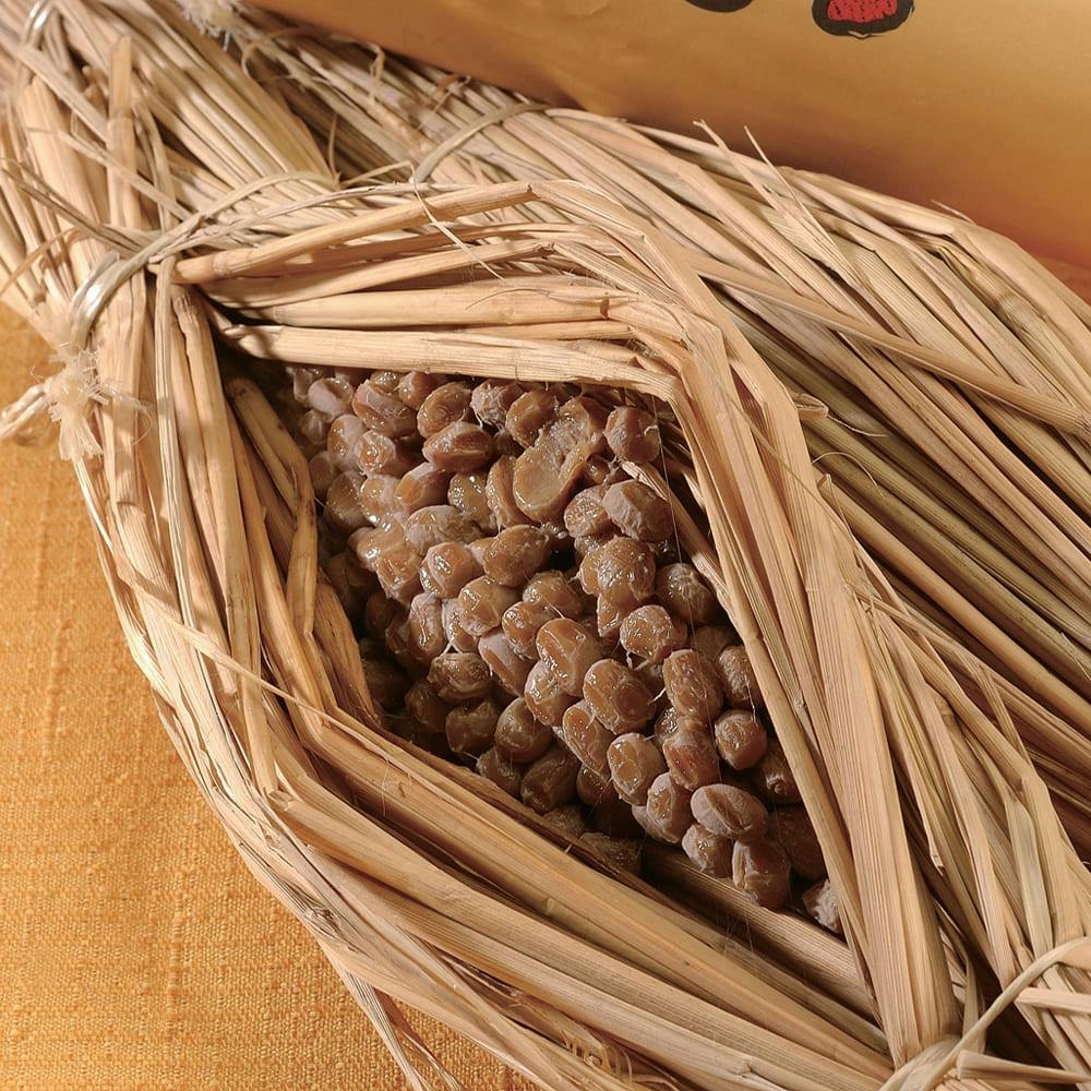 北海道産の小粒大豆「すずまる」を使った昔ながらのわら納豆。納豆と切干大根を醤油をベースに調味した「そぼろ納豆」とのセットです。