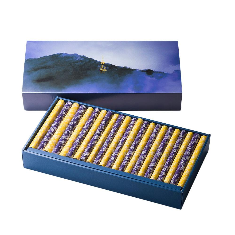 素材、製法、味わい、食感、喉越し、風味、すべてにおいてこだわり、最高を求めた素麺「小神」。独自の小麦粉製粉技術を駆使し、小麦粉を20ミクロンという超微粉砕レベルまでに砕くことにより、麺の命である歯応えの良さを追求しました。その小麦粉を捏ねてねかせた生地にはオリーブオイルを使用し、ひも状にしていきます。オリーブオイルを使用することにより、風味豊かな和麺に仕上がります。また、乾燥させた麺同士をゆっくり揺らしながら摩擦する工程である磨き工程を12時間施すことにより、麺の滑らかさも同