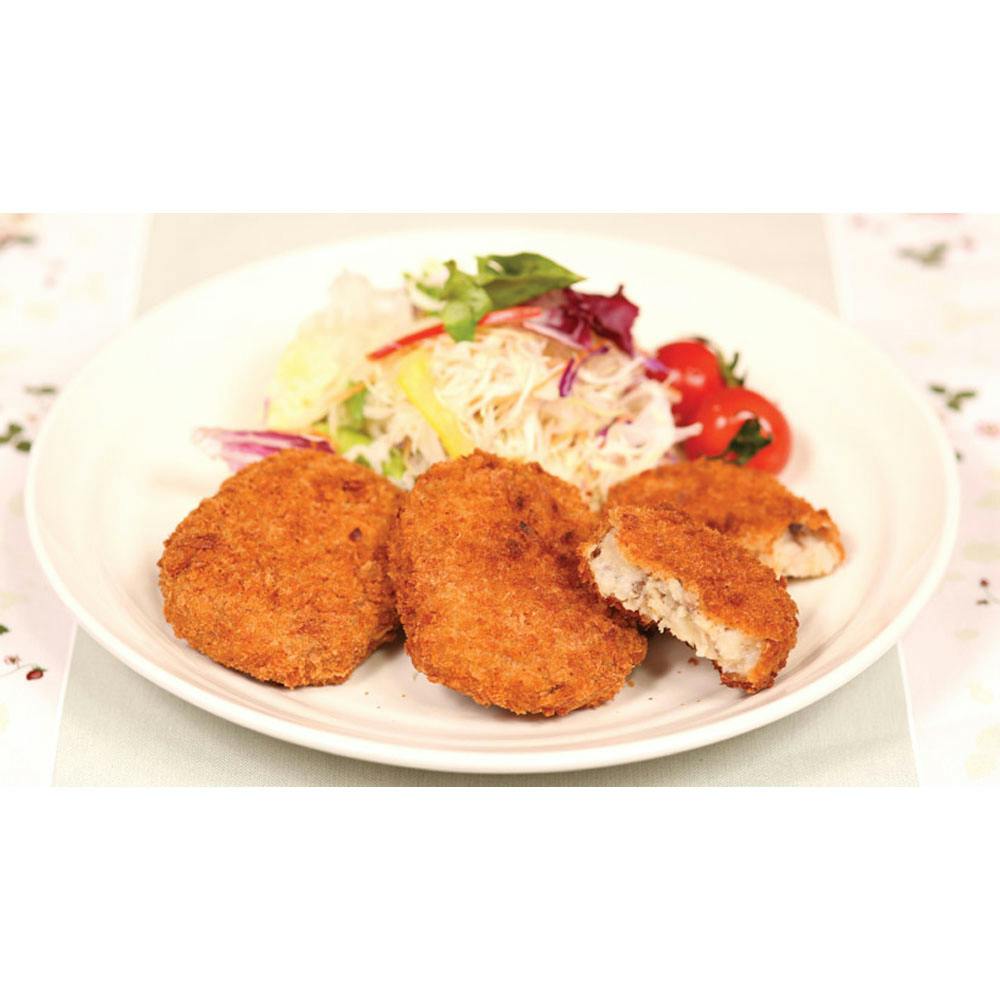 野菜(じゃがいも(北海道産)、玉ねぎ)、牛肉、 砂糖、牛脂、粒状大豆たんぱく、食塩、衣(パン粉、でん粉、大豆粉)/調味料(アミノ酸)、増粘剤(グァーガム、カカオ色素、膨張剤、(一部に小麦・乳成分・牛肉・大豆を含む)