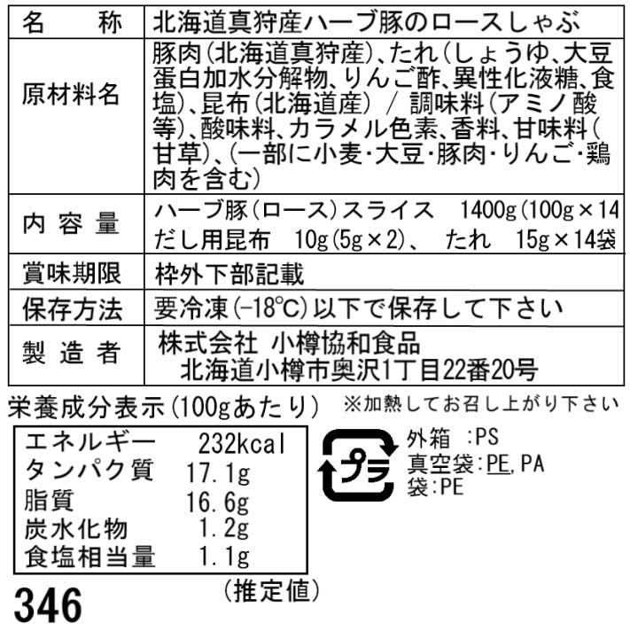 【冷凍】北海道真狩産 ハーブ豚のロースしゃぶ Cセット (100g×14) 送料込み 食品 #80328