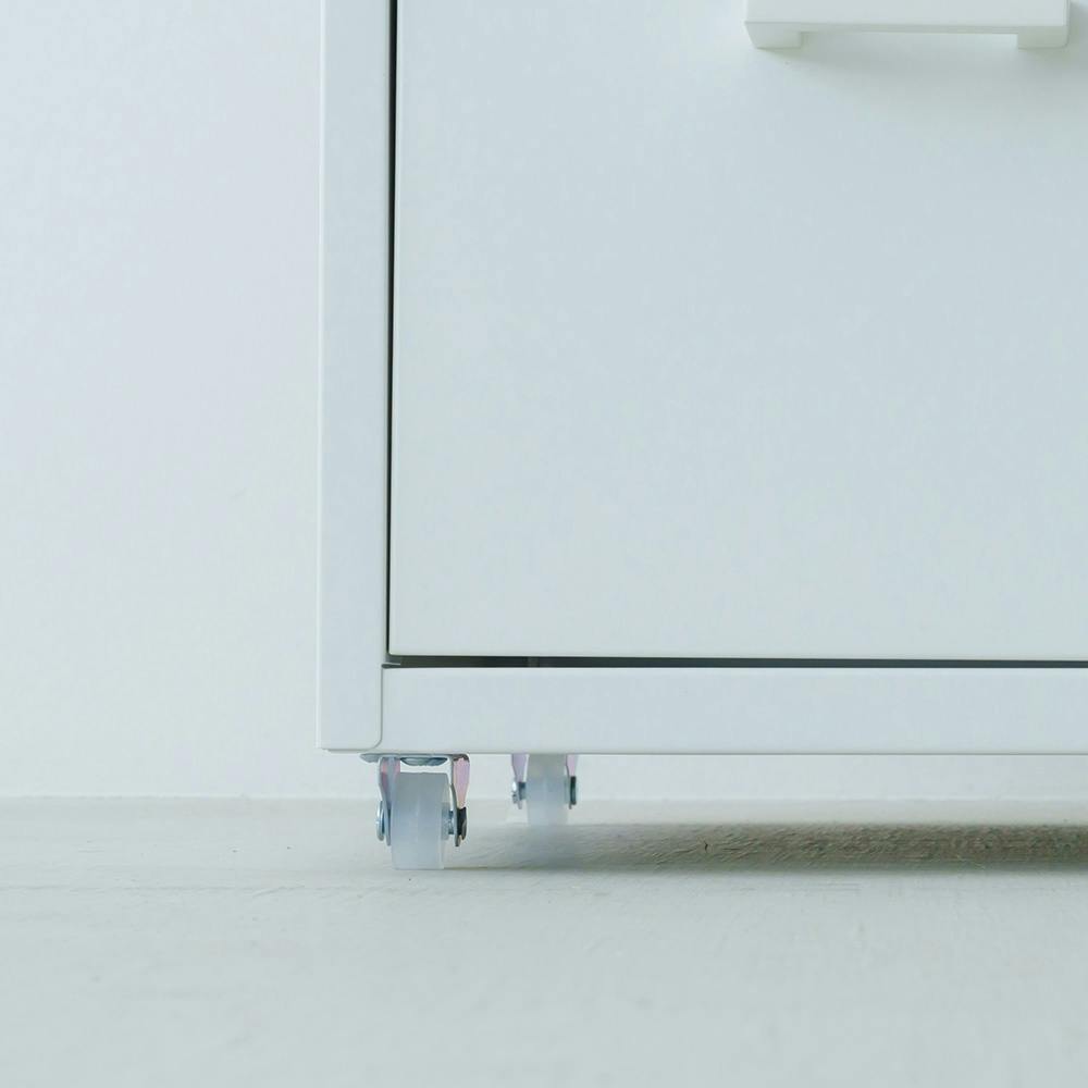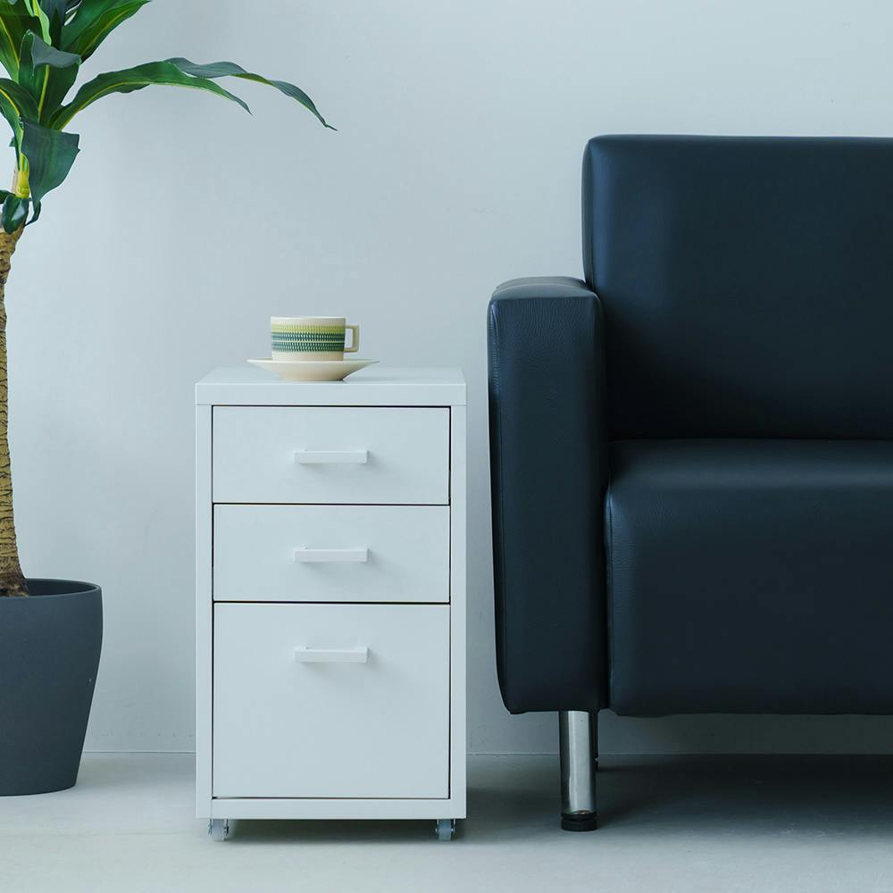 【くらしのストレージワゴン3段(ホワイト/白)】 幅28×奥行44.5×高さ48cm オフィス デスク ワゴン スチール キャビネット サイドワゴン 収納 引出し モダン インテリア 事務所 会議室 書類収納 省スペース 組立品