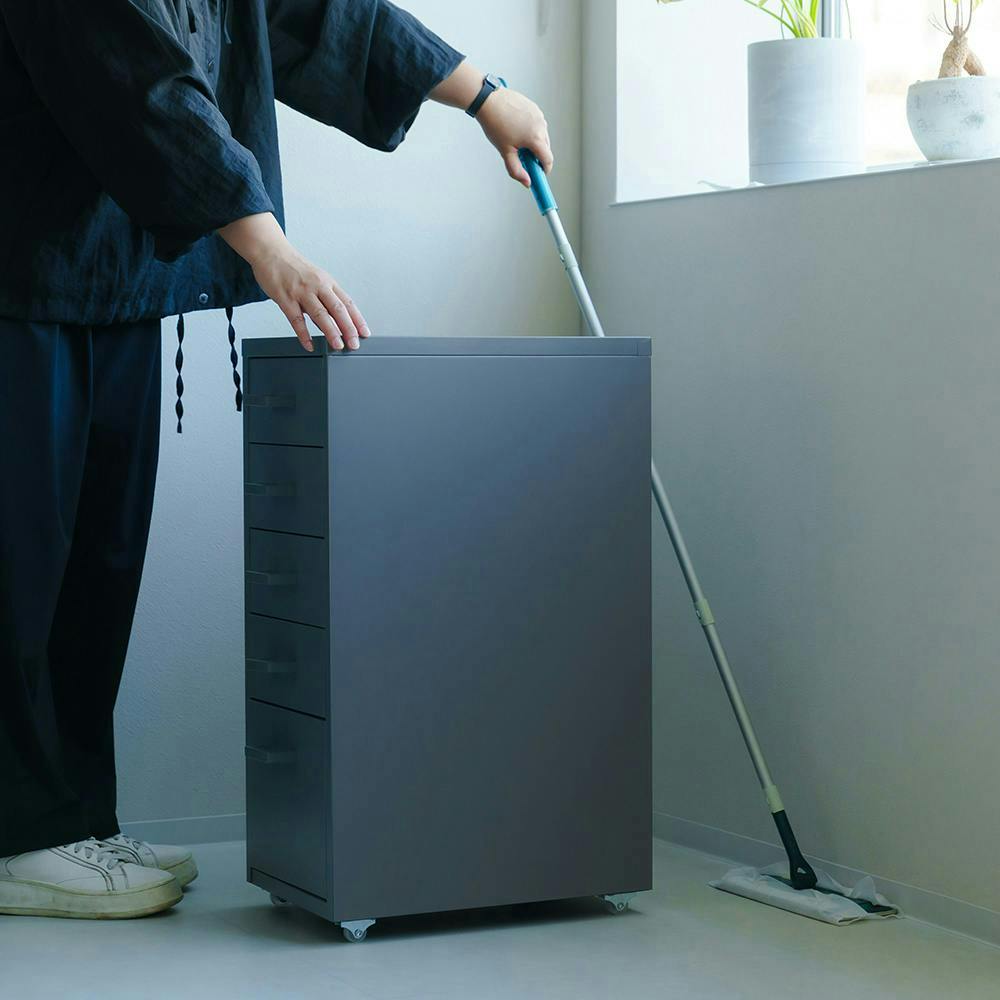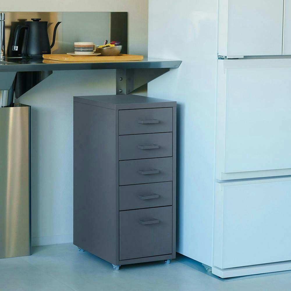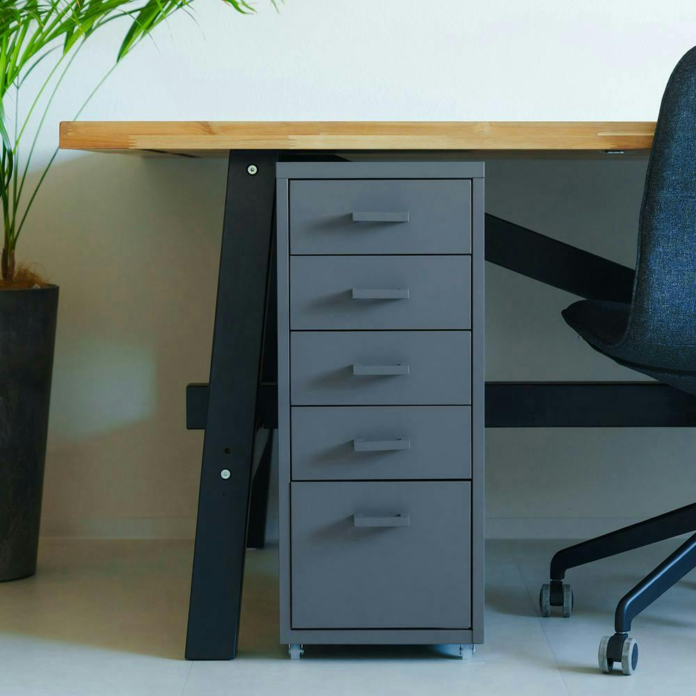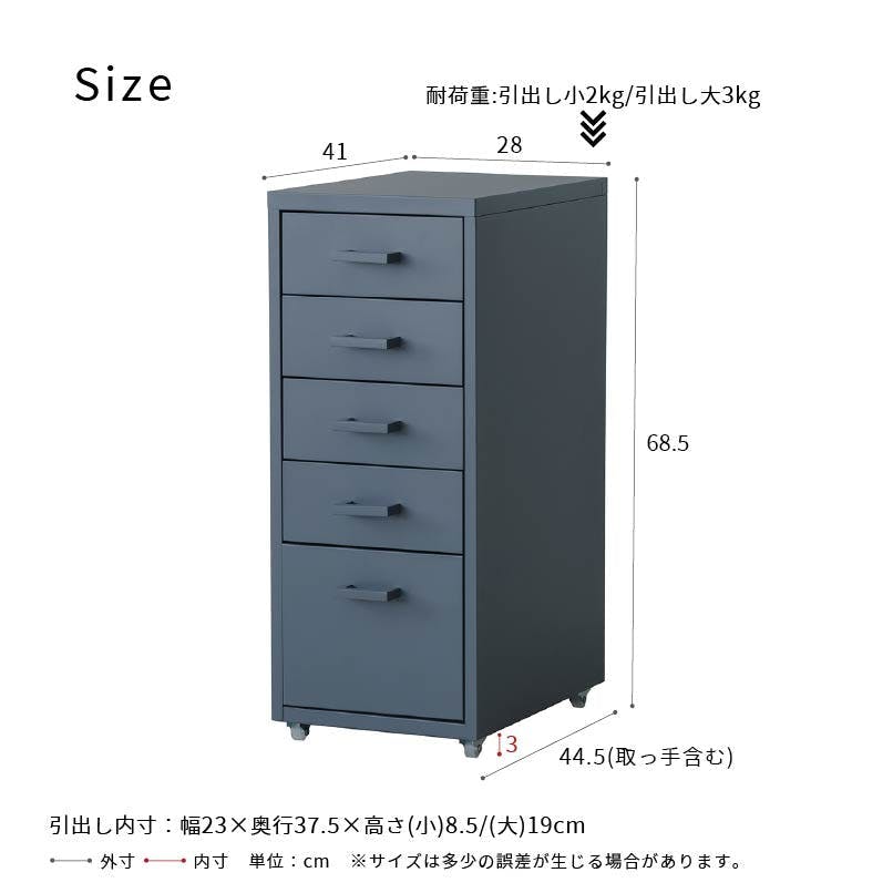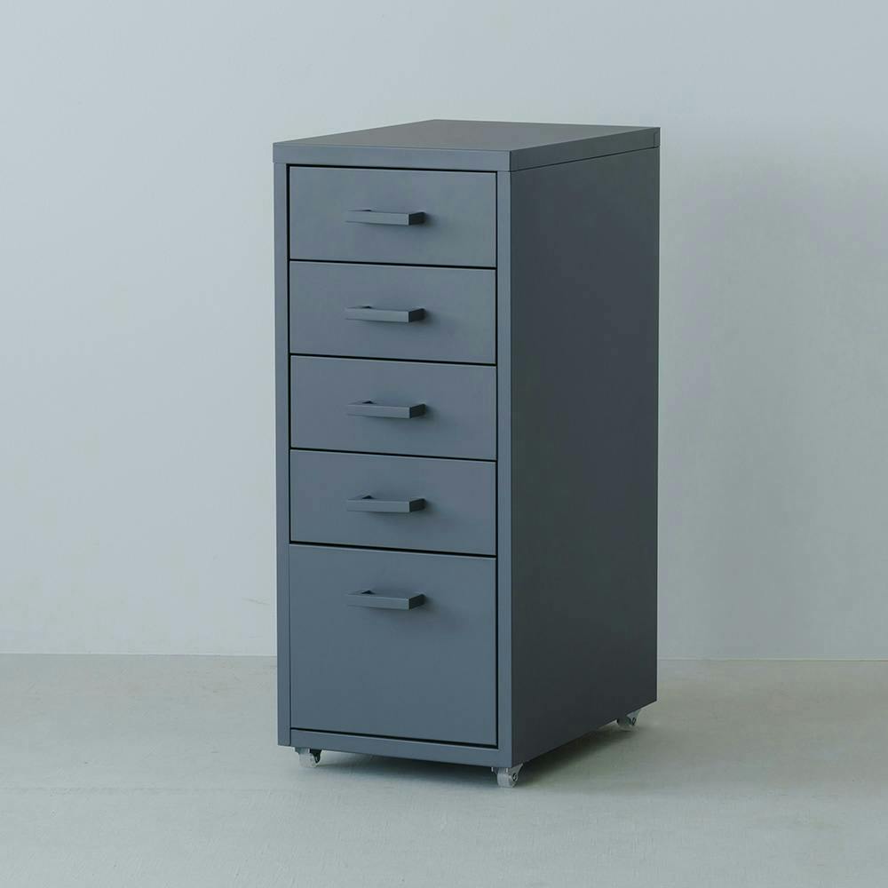 【くらしのストレージワゴン5段(グレー/灰)】 幅28×奥行44.5×高さ68.5cm オフィス デスク ワゴン スチール キャビネット サイドワゴン 収納 引出し モダン インテリア 事務所 会議室 書類収納 省スペース 組立品
