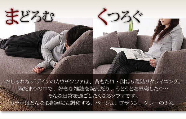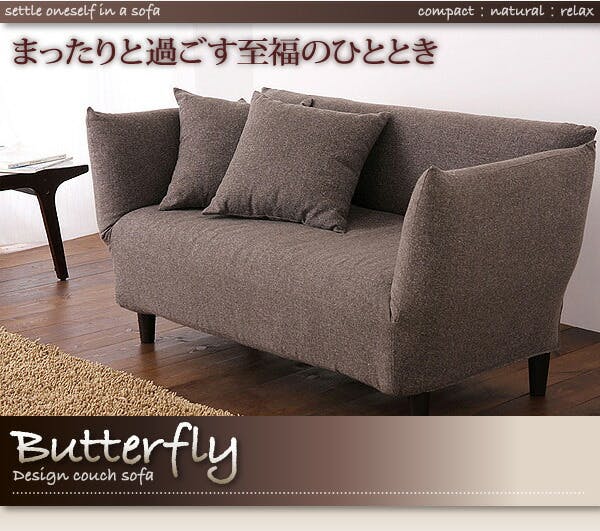 普通のカウチはつまらない!そんな人におススメ・・・デザインカウチソファ【butterfly】バタフライ オシャレなデザインのカウチソファは、背もたれ・肘は5段階リクライニング。クッションも2個付きで、いつでも自分のスタイルでくつろいでいただけます。コンパクトながら、機能は十分。ワンルームにも置けるソファです!色はどんなお部屋にも調和する、ベージュ・ブラウン・グレーの3色。