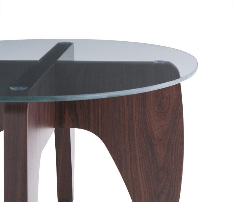 ●違いを楽しむ、2WAYデザインCludの木脚は、上下どちらの向きでも使用できるようにデザインされています。お部屋やその日の気分に合わせて、選んでお使いいただけます。木脚の十字をガラス側にすると、しっかりと天板を支える安定感のあるデザイン。逆に十字を床側にすると、天板を点で支える、ガラスが強調されたデザインになります。◆