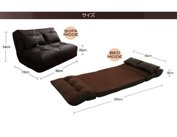 ソファ時:(約) 幅90×奥行き72(座面奥行き45)×高さ54(座面高25)cm、ベッド時:(約)幅90×長さ200×高さ18cm