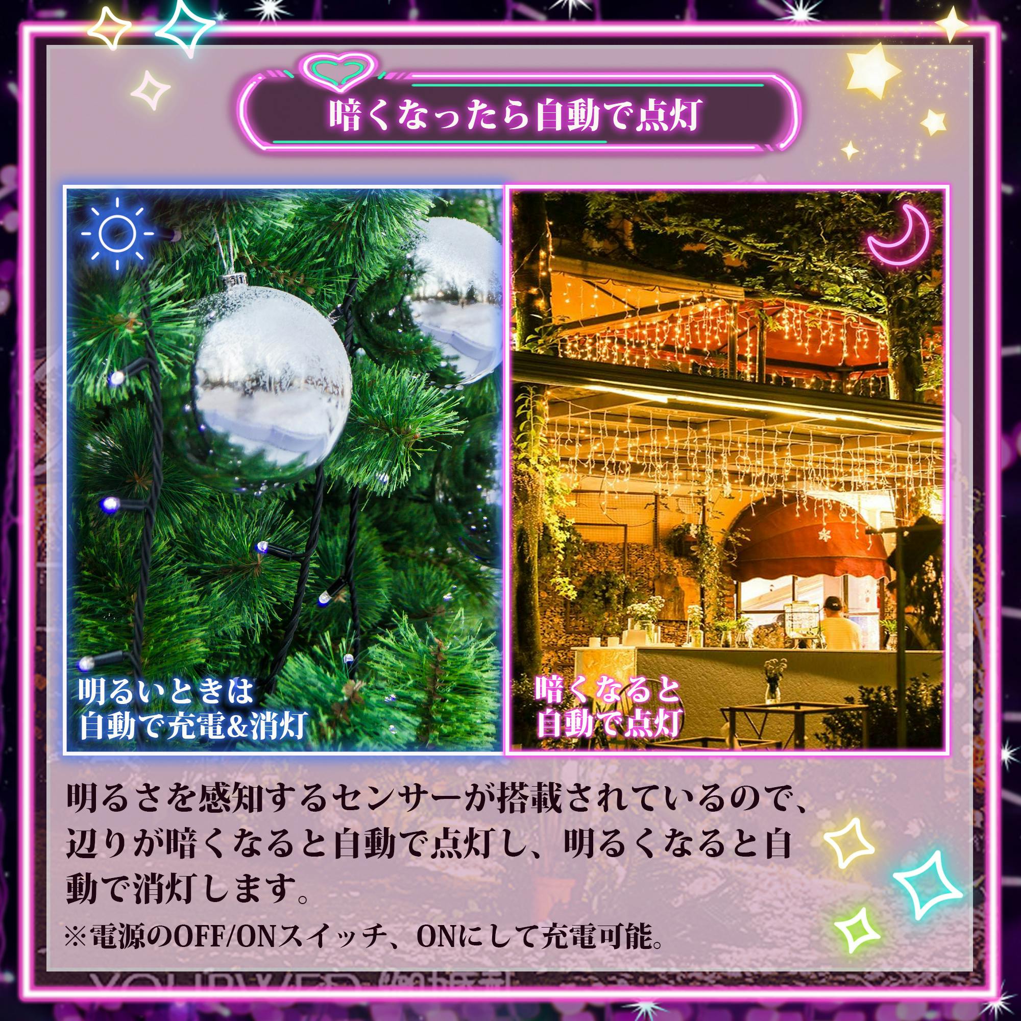 KOZUMUWAN つららライト ソーラー イルミネーション LED 120球 9m 全5色 8パターン クリスマスライト 防雨 充電式 太陽光 夜間自動点灯 飾り 電飾 LED連結可 高輝度 長寿命 高品質 記憶 メモリー機能 おしゃれ 屈曲性 柔軟性 複数連結 省エネ (ブルー・ホワイト)