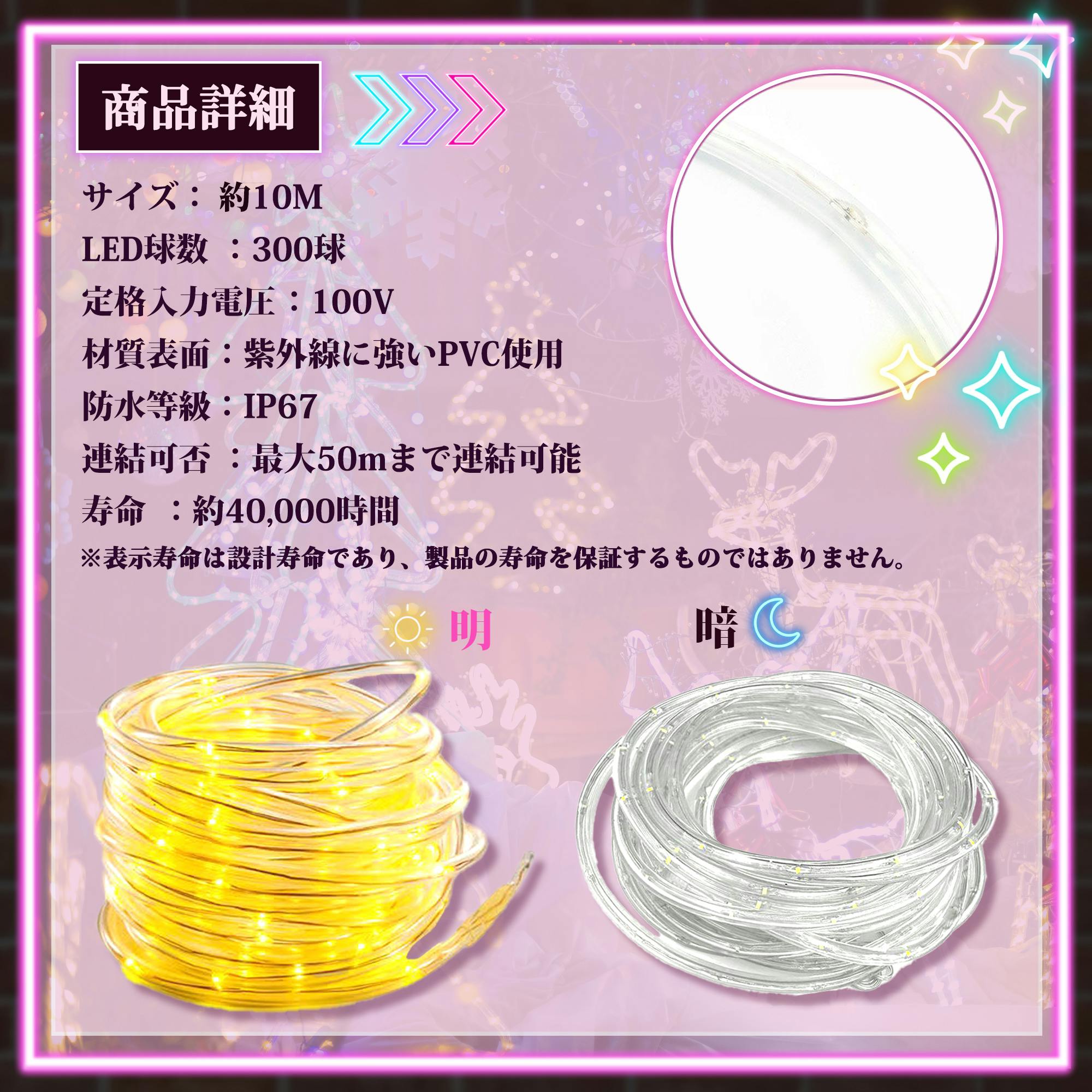 KOZUMUWAN イルミネーションライト クリアチューブ チューブライト 300球 10m 8色可選 2芯タイプ 直径10mm クリスマス イルミネーション 屋外使用可能 ledライト 屋外 定番商品 防雨 連結可 保証付 おしゃれ (4色ミックス)