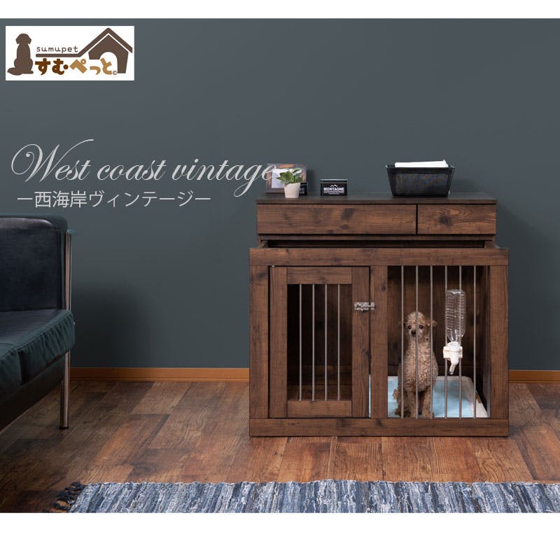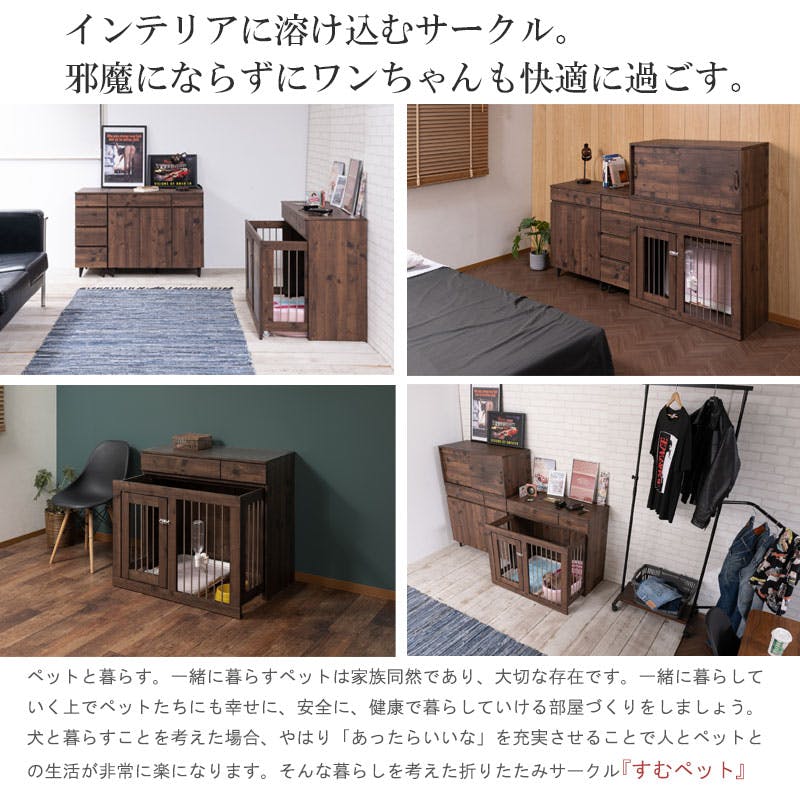 【WHITE LIV】 幅90 奥行40 高さ80 収納付きスライド収納型ケージ ホワイト フレンチシャビー ペットケージ ペットサークル 省スペース 小型犬 中型犬 室内サークル スライド 背面化粧 犬 ペット用品 犬用品 犬小屋 ケージ 白