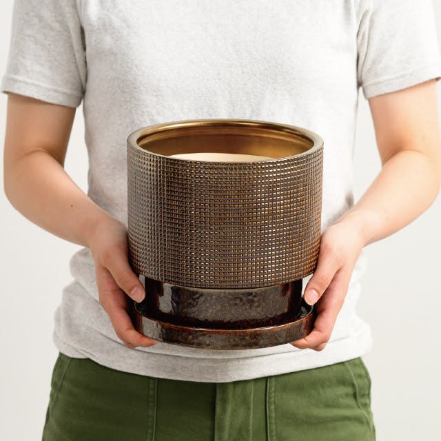 ヘッズ 雑貨-フラワーベース 直径195(155)×H185mm 受皿:直径185×H20mm ハンドメイドアートフラワーポット-35(1個) HEADS HNP-FPO35