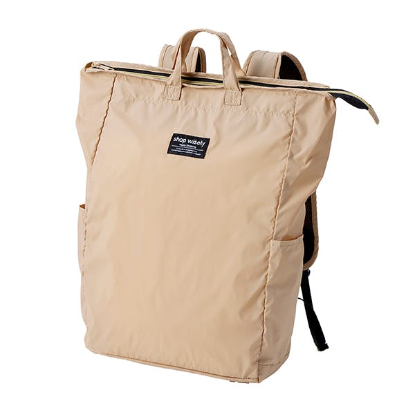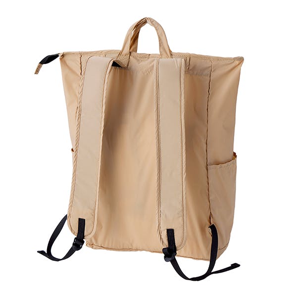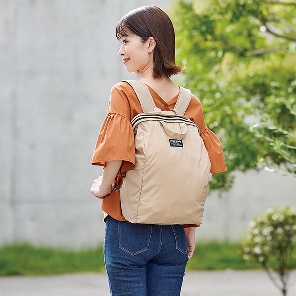 【手の平サイズに畳めるリュック(ベージュ)】 ちあふる ショルダーベルト 持ち運び リュック メッシュ ナイロン ファスナ アイロン クルッ ベルト ボタン JAN:4989409103337