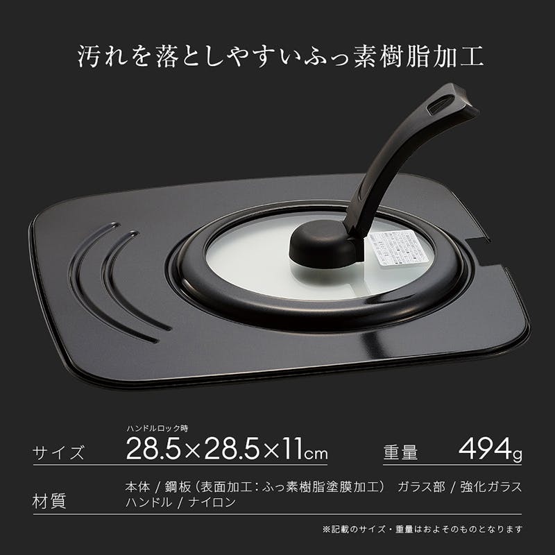 商品サイズ:(約)28.5×28.5×11cm(ハンドルロック時) 適応サイズ:20cm、24cm深型、26cm、26cm深型、スクエアパン