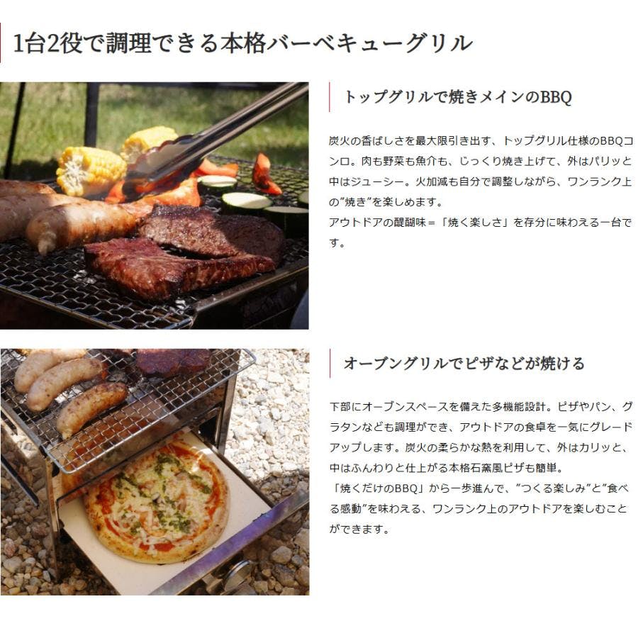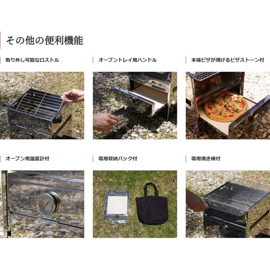 ■材質 本体、ハンドル:ステンレス ストーン:セラミック■炭床:黒皮鉄 ロストル、焼き網:鉄+メッキ■附属品 ハンドル、収納バッグ、焼き網