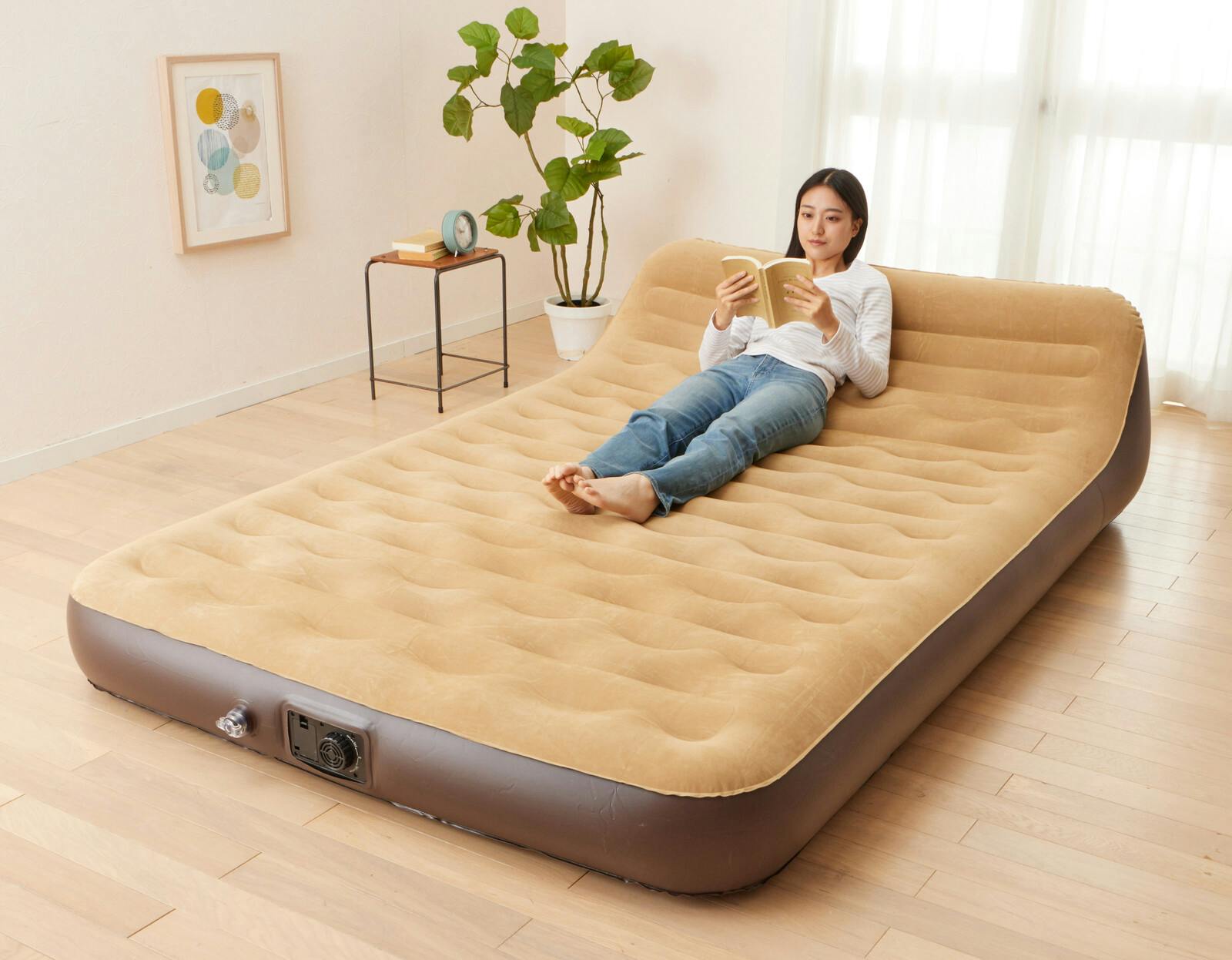 電動で空気の出し入れが楽々。スイッチを入れるだけで寝心地ふかふかのベッドに!! ●急なお客様のお泊りに、必要な時にサッと使える、約2~3分で完成 ●背もたれが付いた最新型:背もたれに寄りかかって本を読んだり、枕代わりにしてリラックスして過ごすことができます。 ●優れた体圧分散性で快適な寝心地を実現します:立体構造の筒状繊維が1点に沈むことを防ぎ身体の凹凸をなぞるように包み込みます ●電動ポンプ内蔵で約2~3分で完成!
