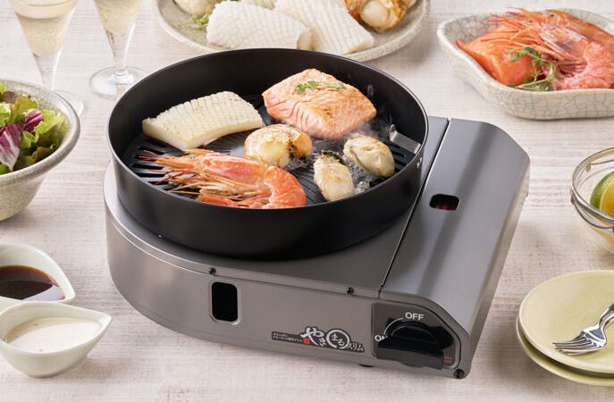 ●素材/本体:鋼板(粉体塗装)、プレート:アルミダイカスト(フッ素樹脂加工)、水皿:鋼板(耐熱塗装)、バーナー:耐熱アルミダイカスト、点火つまみ:ABS樹脂、トング:18-8ステンレス ●日本製