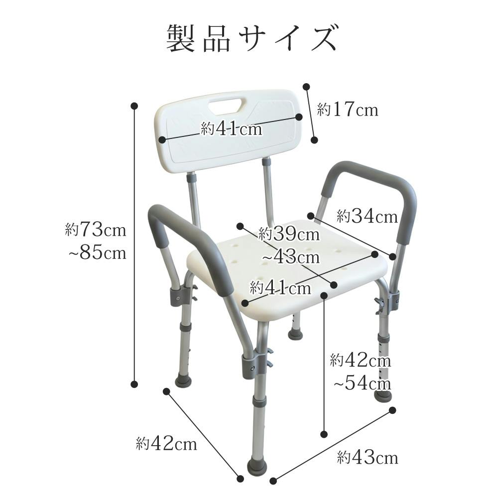 シャワーチェア バスチェアー 入浴介助 お風呂椅子 調高可能 背付き 肘掛け 膝や腰の負担軽減 介護 入浴 お風呂 バスタイム お年寄り シャワーチェアー SR-SBC018KD