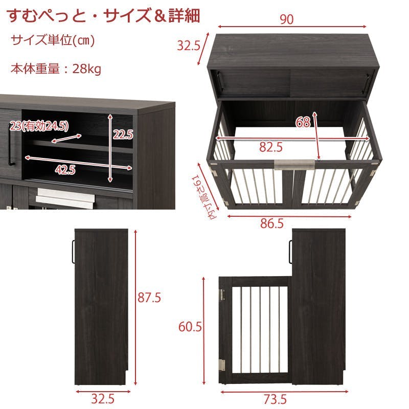 ■ケージ内寸/(約)幅82.5×奥行68×高さ61cm■引戸内寸/(左右共通):(約)幅42.5×奥行24.5(棚板23)×高さ22.5cm