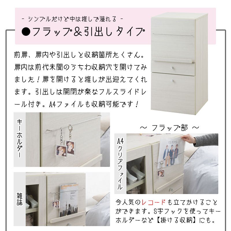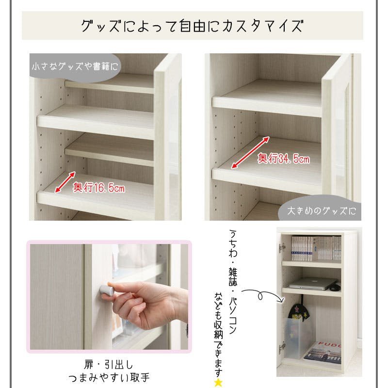 • 棚にうちわが入る!?機能たくさん推し活収納ラック【推しピの推し入れ】 コレクションラック グッズ収納 キャビネット ブックシェルフ ディスプレイ ホワイトウォッシュ 白 木製 棚 収納家具 収納ケース フルスライドレール 多機能 背面化粧 間仕切り 推しカツ 収納棚