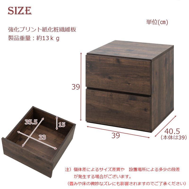 【ARIZONA】キューブボックス 引出タイプ ストッパー付 引き出 ローチェスト 2段 レンジ台 収納ボックス A4 DVD ラック 台 収納ラック セラミック クローゼット上 下 幅39 キッチン ヴィンテージ ブラウン