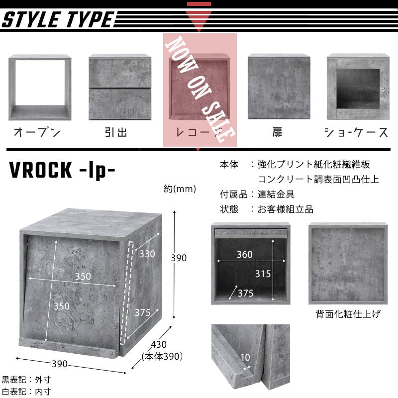 【VROCK】ブロックシリーズ リアルを追求したお洒落でイケてるコンクリート調キューブボックス LPレコードタイプ ディスプレイ棚 飾り棚 収納ボックス ラック 台 収納ラック レコード収納 A4ファイル 雑誌 本 マガジン セラミック 石 おしゃれ クローゼット上 下 グレー