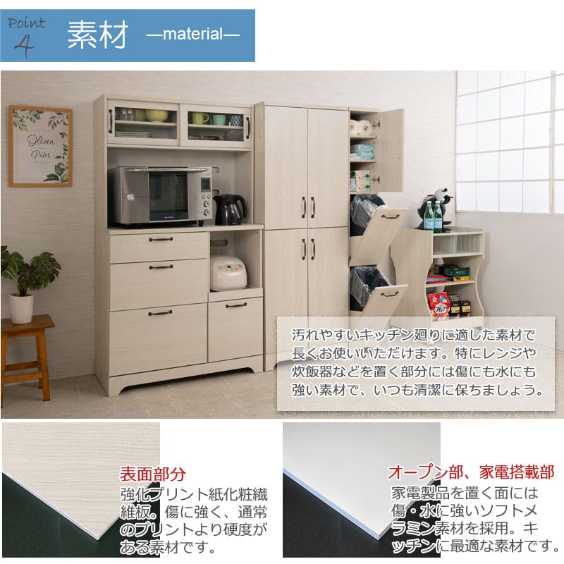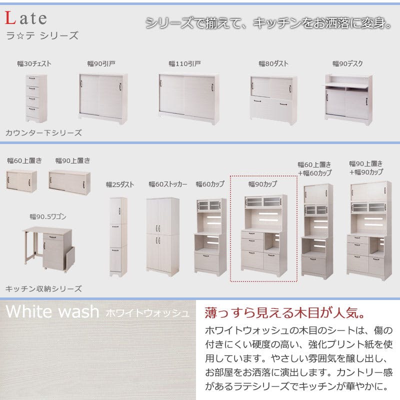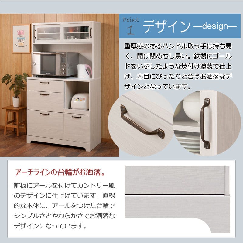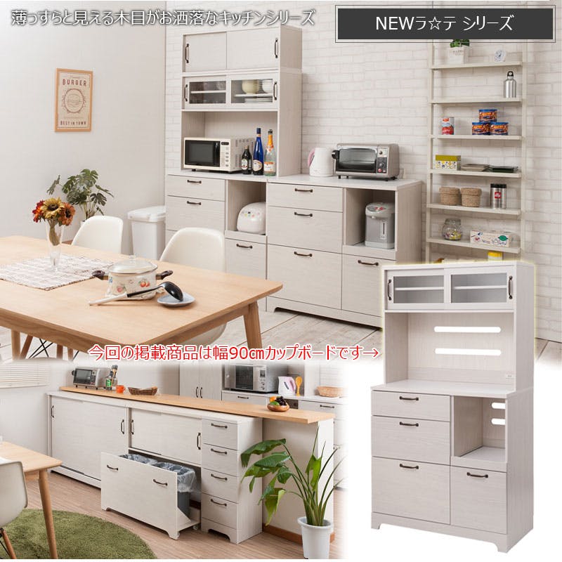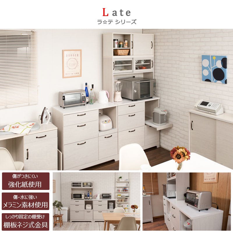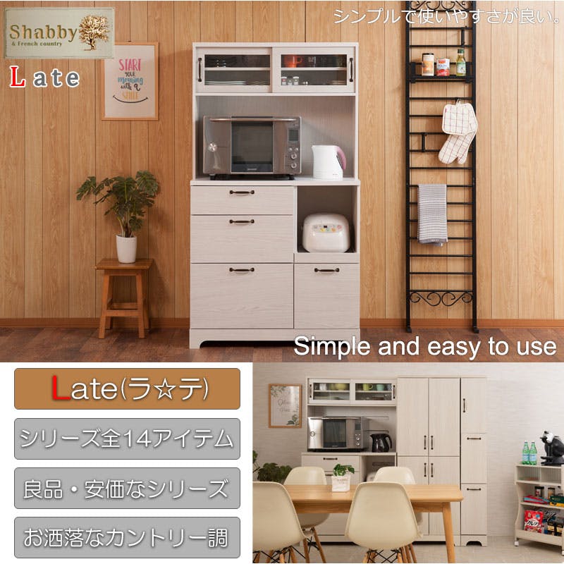 【Late】ラテシリーズ 家電収納キッチンボード 幅90 高さ160~200 ホワイト色 スライド棚 食器棚レンジラック収納 カップボード キッチン収納 北欧 ホワイト ラック棚 おしゃれ キッチンラック レンジボード シンプル カフェ風 木目 木製 フレンチカントリー