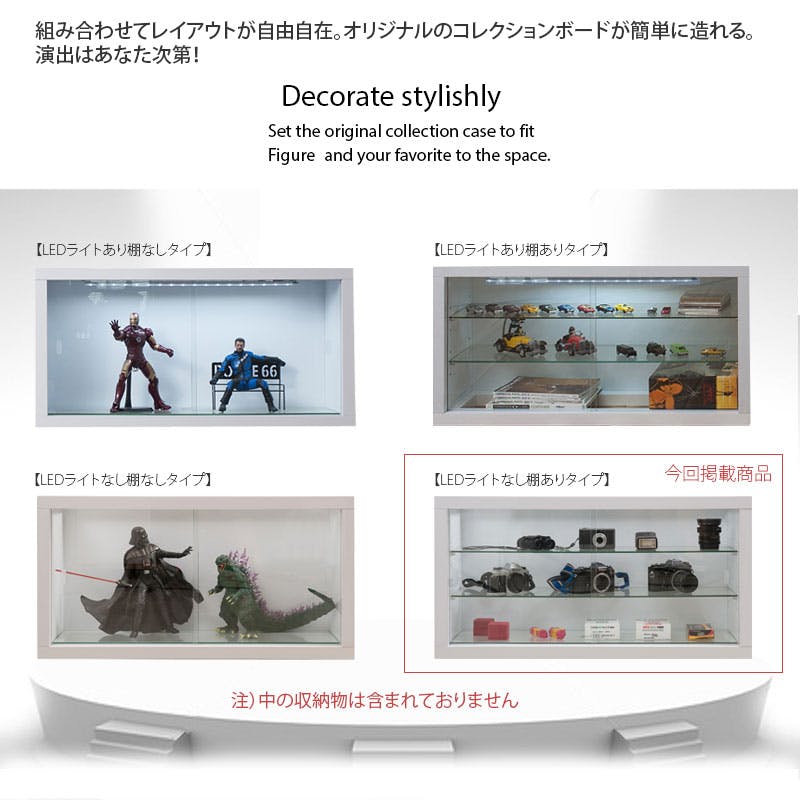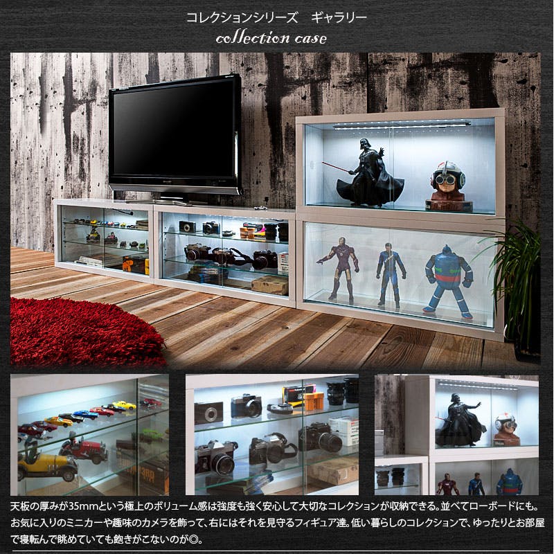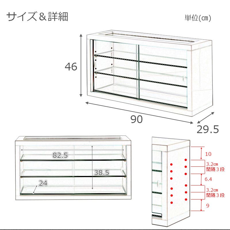 ■商品の仕様/本体:ハイグロス化粧繊維板、引戸・地板・棚板:4mm厚強化ガラス