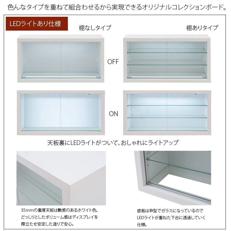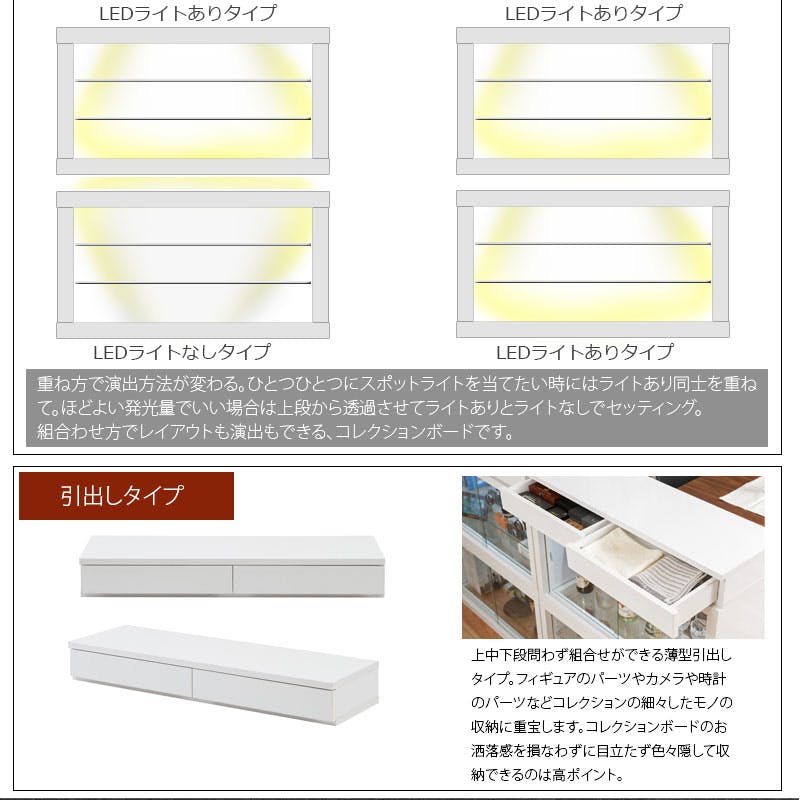 【Recta】しっかり守る頑丈設計 引戸ガラス扉付ユニットコレクションボード 幅90 ガラス棚あり LEDライトなし ホワイト色 WH 白 鏡面 光沢 ハイグロス 引き戸 フィギュア ケース ディスプレイ ドール 保護ケース コレクター 飾り棚 スタッキング ディスプレイ ショーケース