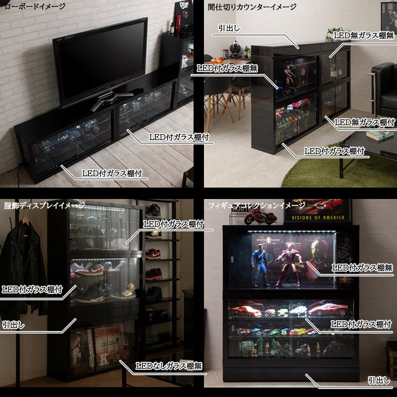 ■商品の仕様/本体:ハイグロス化粧繊維板、引戸・地板・棚板:4mm厚強化ガラス