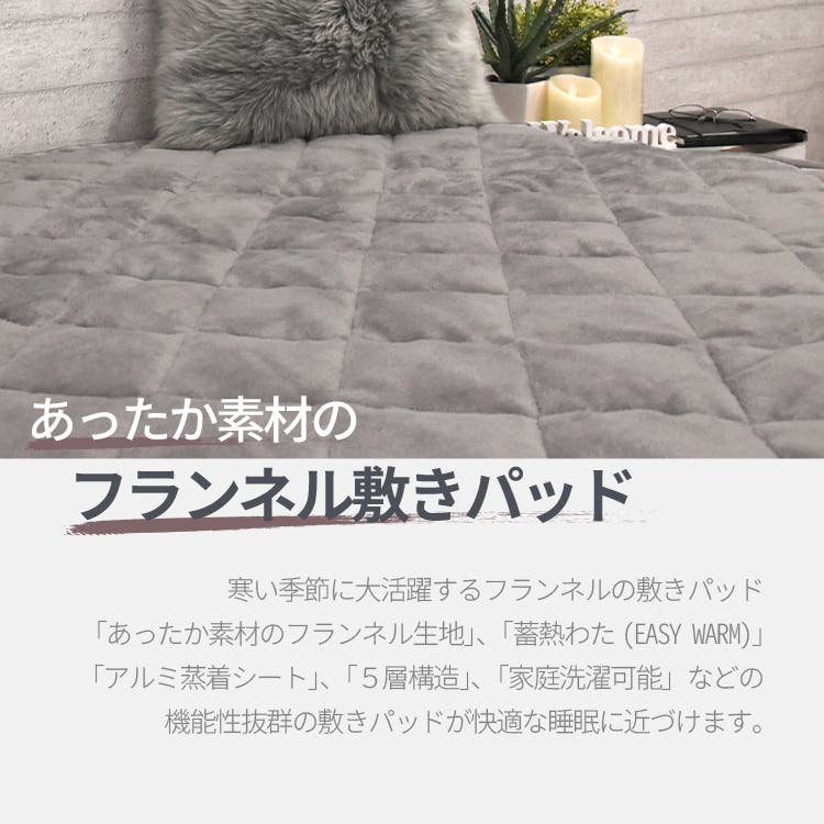 5層構造 あったか 敷きパッド フランネル アルミシート入り シングル セミダブル ダブル 100cm 120cm 140cm 205cm 秋冬用 保温 蓄熱 断熱 敷き毛布 ベッドパット 暖かい 洗える 洗濯可能 EASY WARM わた使用 韓国インテリア おしゃれ かわいい ピンク グレー