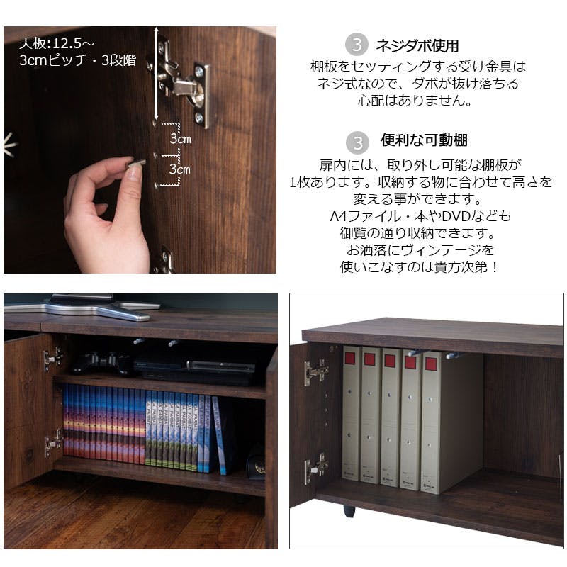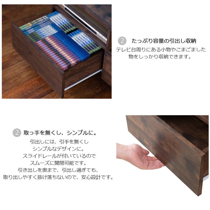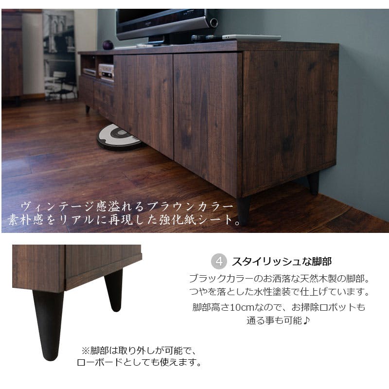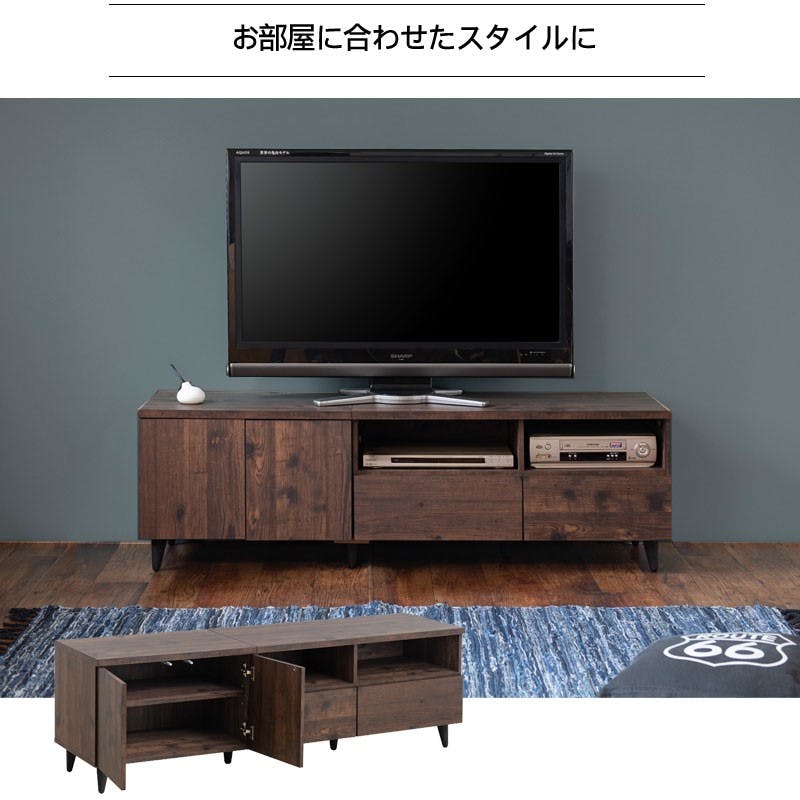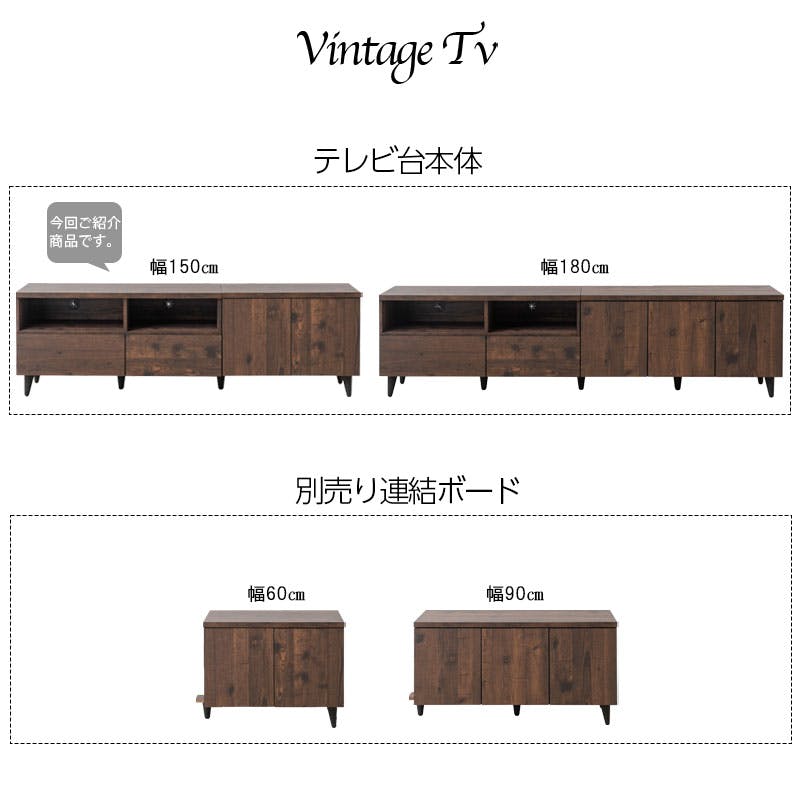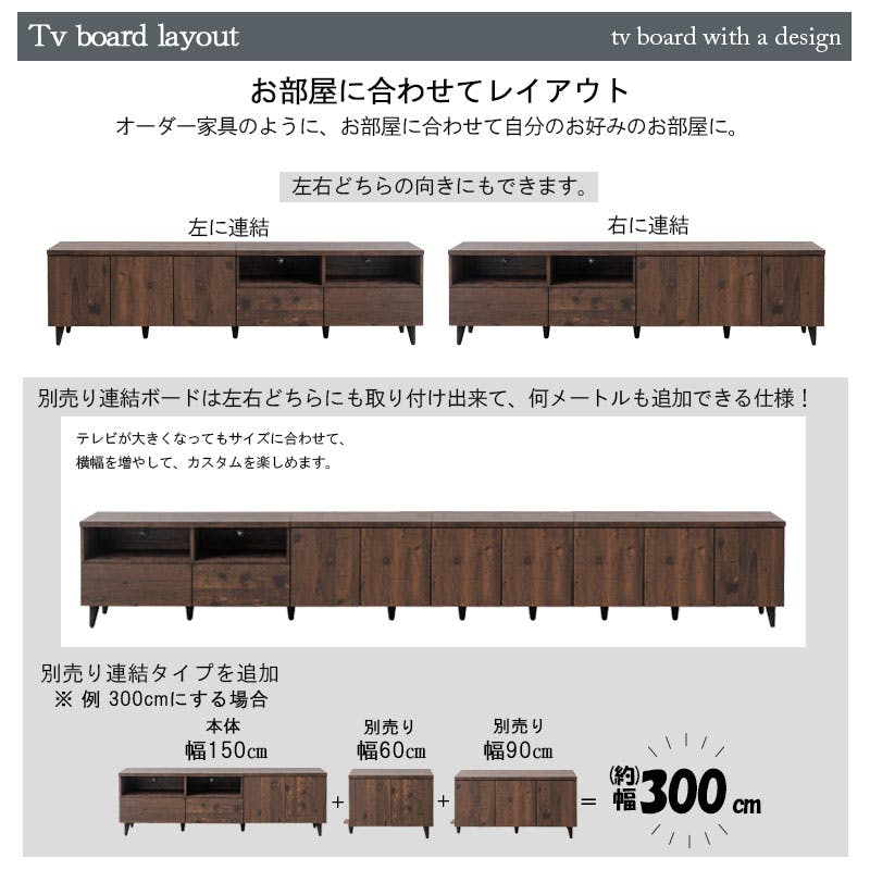 【ARIZONA】連結で幅を自在に変えられるローボード 幅150 高さ47 テレビ台 55インチ 60インチ 65インチ 大型テレビ ヴィンテージ デッキ収納 ルーター収納 DVD お洒落 ダークブラウン テレビボード 引出し 棚 扉 脚付 収納付き TVボード 木製 A4収納 ゲーム機収納