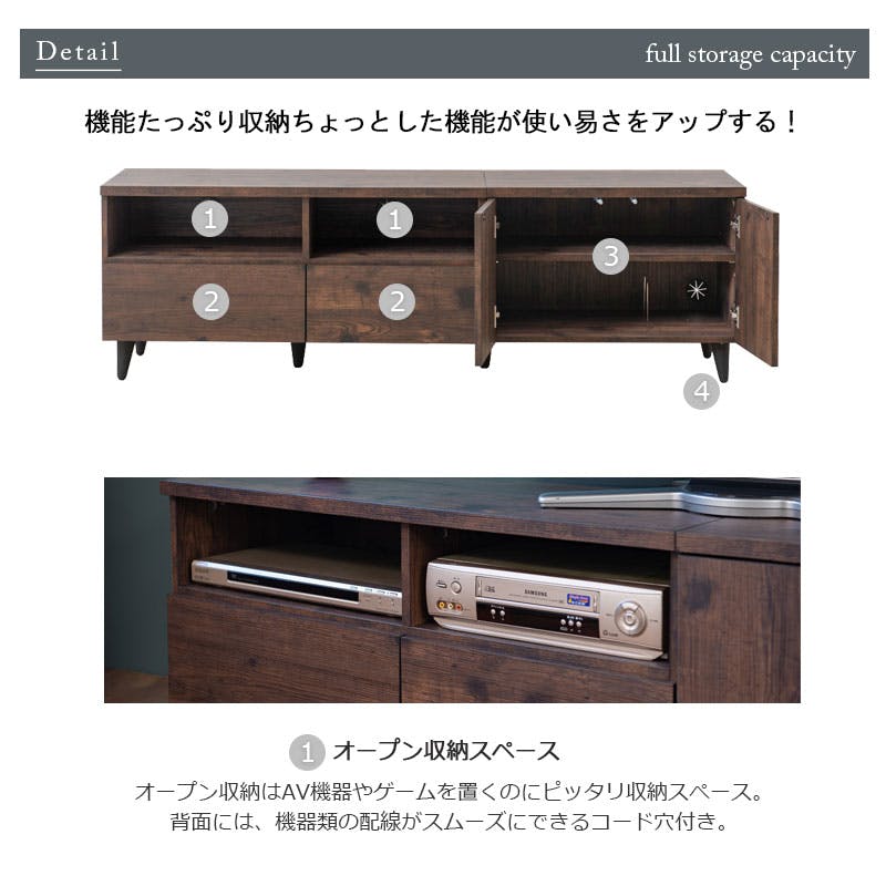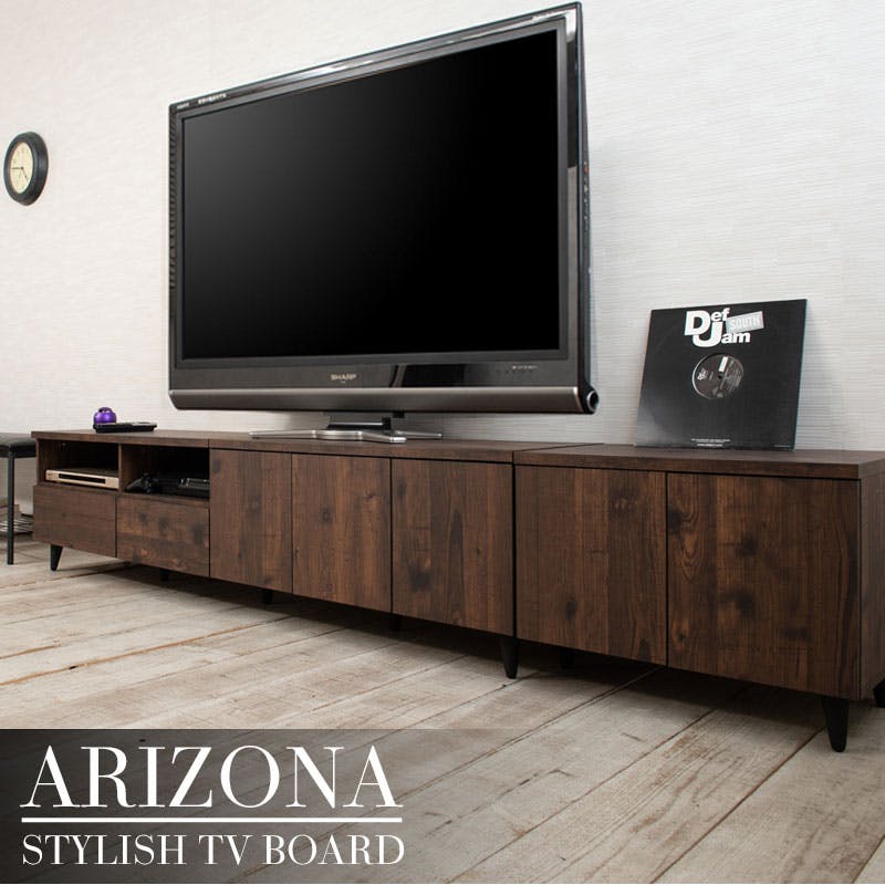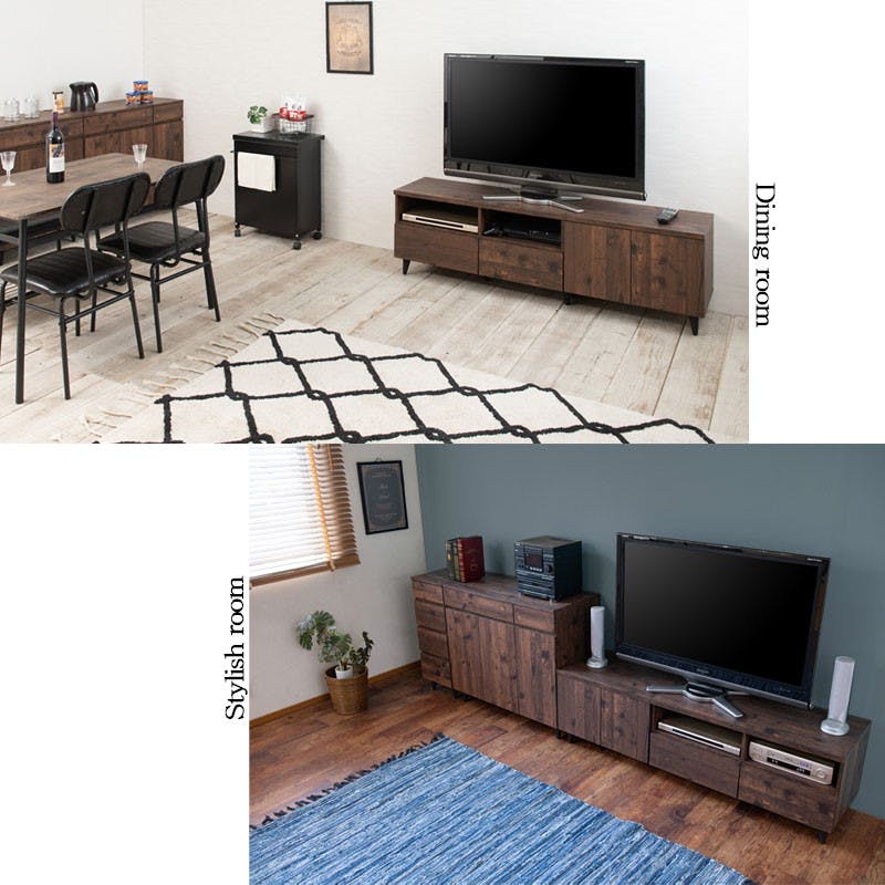 • 【ARIZONA】連結で幅を自在に変えられるローボード 幅150 高さ47 テレビ台 55インチ 60インチ 65インチ 大型テレビ ヴィンテージ デッキ収納 ルーター収納 DVD お洒落 ダークブラウン テレビボード 引出し 棚 扉 脚付 収納付き TVボード 木製 A4収納 ゲーム機収納