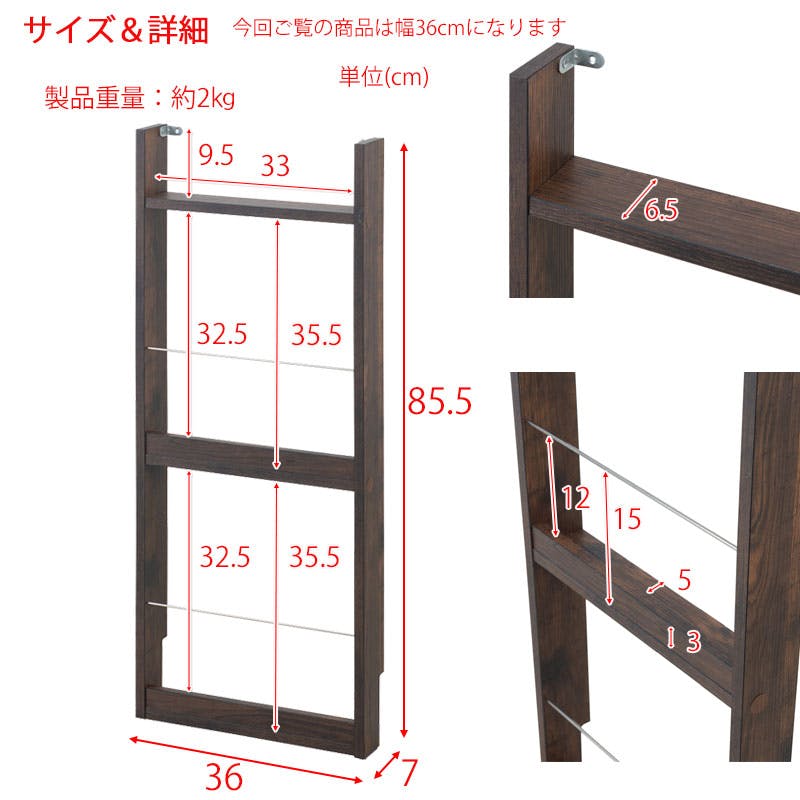 ■収納部内寸/(約)幅33×奥行(上)6.5(中・下)5×高さ(上)9.5(中・下)35.5cm■巾木よけ/(約)幅1×高さ10cm